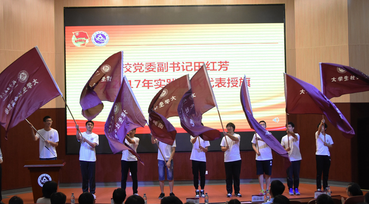 6月23日下午,学校在文化会堂召开2017年暑期社会实践动员大会暨出征授旗仪式。校党委副书记田红芳出席仪式,学生工作部、招生就业处负责人,各学院党委副书记及团委书记,200多名暑期社会实践团队负责人参加了大会。大会表彰了在2016年暑期社会实践中表现突出的优秀团队和个人。2016年米兰暑期社会实践成果丰厚,被中国青年报评为“全国最佳实践大学”,有三个团队分别获得“最佳实践团队”、“优秀实践团队”、“百强实践团队...