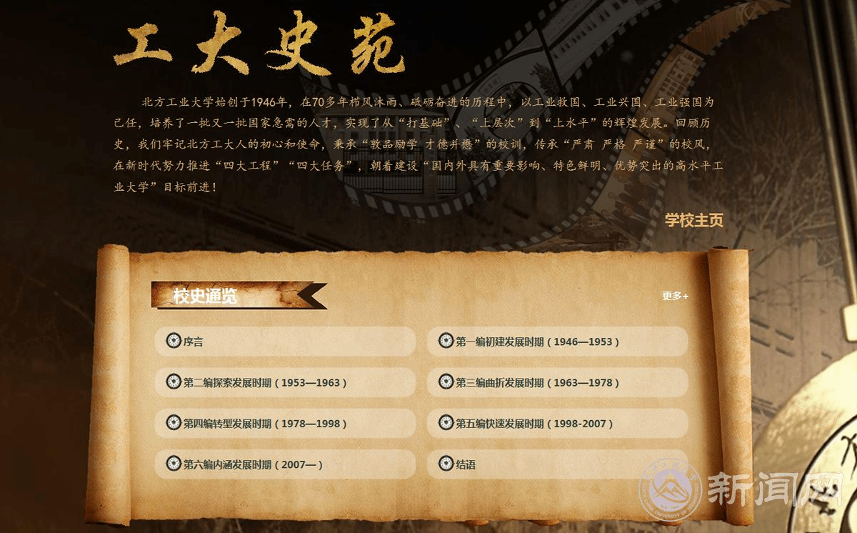 国之大必有于立,校之大必著于史。米兰milan官方网站历经70多年的风雨历程,一代代北方工大人筚路褴褛、以启山林,用热血与汗水铸就了北方工大今日的辉煌,诠释了“敦品励学、才德并懋”的校训,孕育了“严肃、严格、严谨”的校风,形成了“人文、专业、进取”的精神。深厚的历史积淀,既是北方工大的文化之魂,更是新时代北方工大砥砺前行的力量之源。为了方便广大校友师生重温校史,传承校史,不忘北方工大人“办一所好大学、一所...