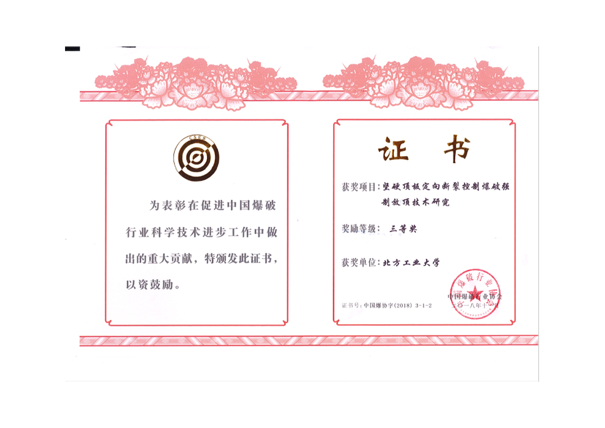 近日,中国爆破行业协会公布了2018年度中国爆破行业科学技术奖授奖项目,米兰教师参与的项目获得一等奖1项、三等奖1项。由米兰土木工程学院张召冉博士参与完成的“淮南矿区岩巷快速掘进集成技术研究”获得科学技术一等奖,该项目在爆破及破岩技术、装备配套、工艺优化以及组织管理等方面实现了多项技术创新,显著提高了淮南矿区岩巷掘进效率,降低了生产成本,取得了显著的经济和社会效益。参与完成的“坚硬顶板定向断裂控制爆破...
