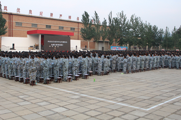 7月7日晚7点,2014级军训团在康庄军训基地举行“铭记历史,珍爱和平”党团员宣誓活动,以纪念中国人民抗日战争暨世界反法西斯战争胜利70周年,军训基地工作人员和承训部队官兵也参加了本次活动。
