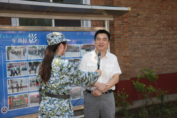 编者按:7月13日上午,顶着炎炎烈日和酷暑高温,校党委书记谢辉来到延庆康庄611军训基地,亲切看望米兰2014级学生军训团的全体师生,并欣然接受了军训团《红星报》记者的专访。