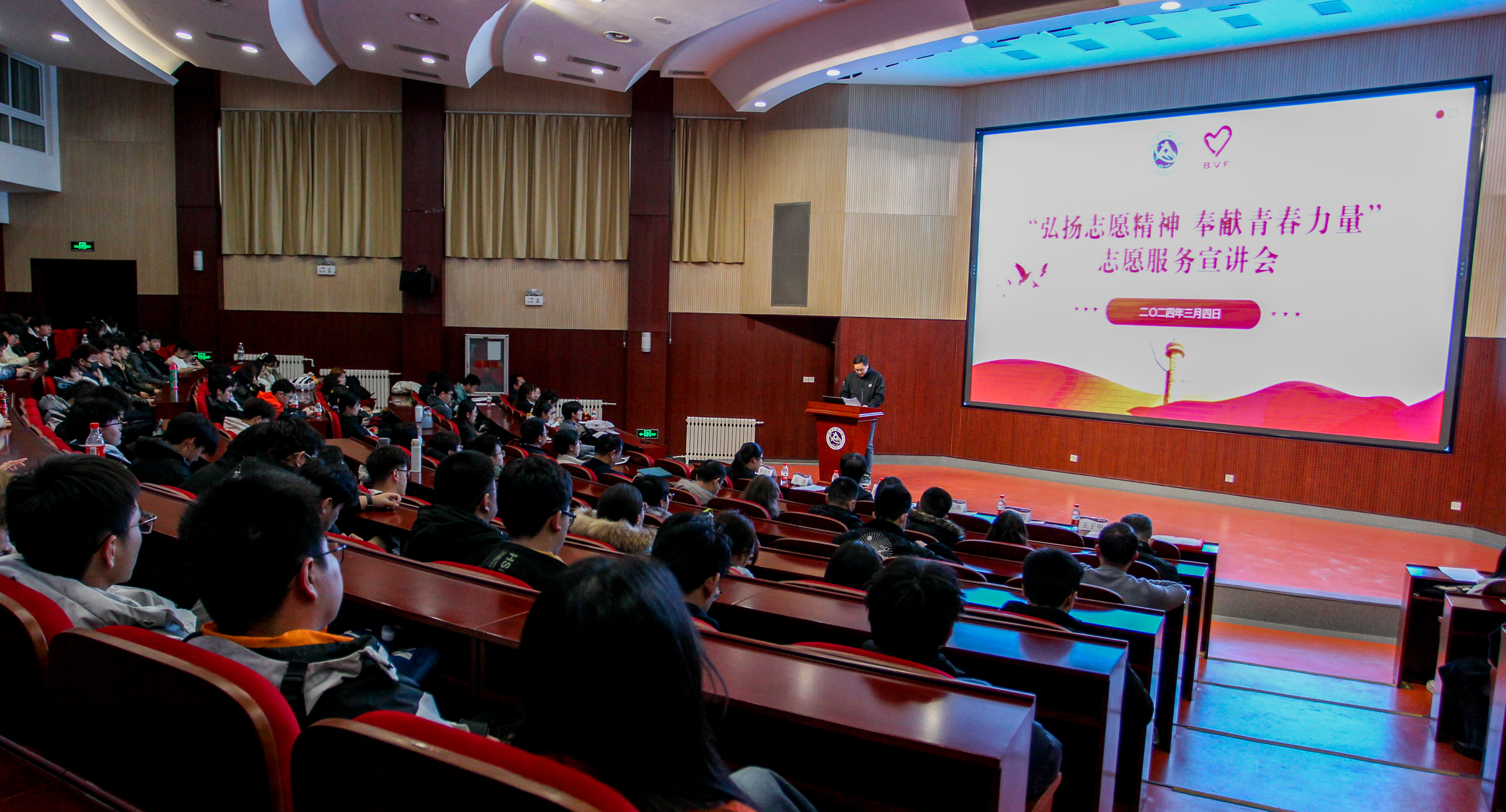 爱心献社会,真情暖人间。3月4日下午,在第61个“学雷锋纪念日”和第25个“中国青年志愿者服务日”即将到来之际,学校在文化会堂召开“弘扬志愿精神奉献青春力量”2023年度志愿服务总结宣讲会,全面总结学校2023年度志愿服务工作成绩,宣传推广典型项目,吹响2024年志愿服务再出发的青春号角。校党委副书记田红芳,学工部、校团委负责人,各学院党委副书记、团委书记、优秀志愿者同学代表等共计150余人参加宣讲会,石景山区青少...