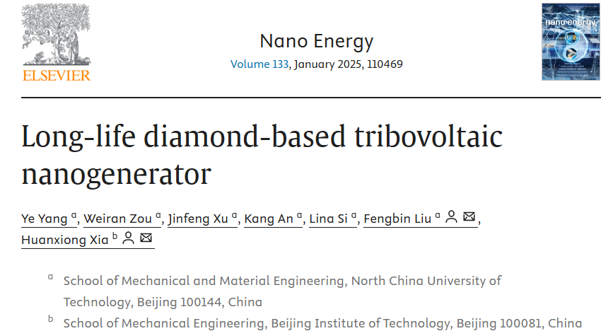 近期,米兰机械与材料工程学院刘峰斌教授团队在能源材料的顶级学术期刊《NanoEnergy》上发表论文“Long-lifediamond-basedtribovoltaicnanogenerator”。该期刊为中科院一区Top期刊,五年影响因子16.3。米兰杨晔副教授为第一作者,2022级硕士研究生邹蔚然为第二作者,刘峰斌教授为通讯作者。基于半导体材料的直流摩擦纳米发电机(DC-TVNG)是半导体能源领域的研究重点。硅片等半导体材料在摩擦过程中的磨损会导致DC-TVNG输出电...