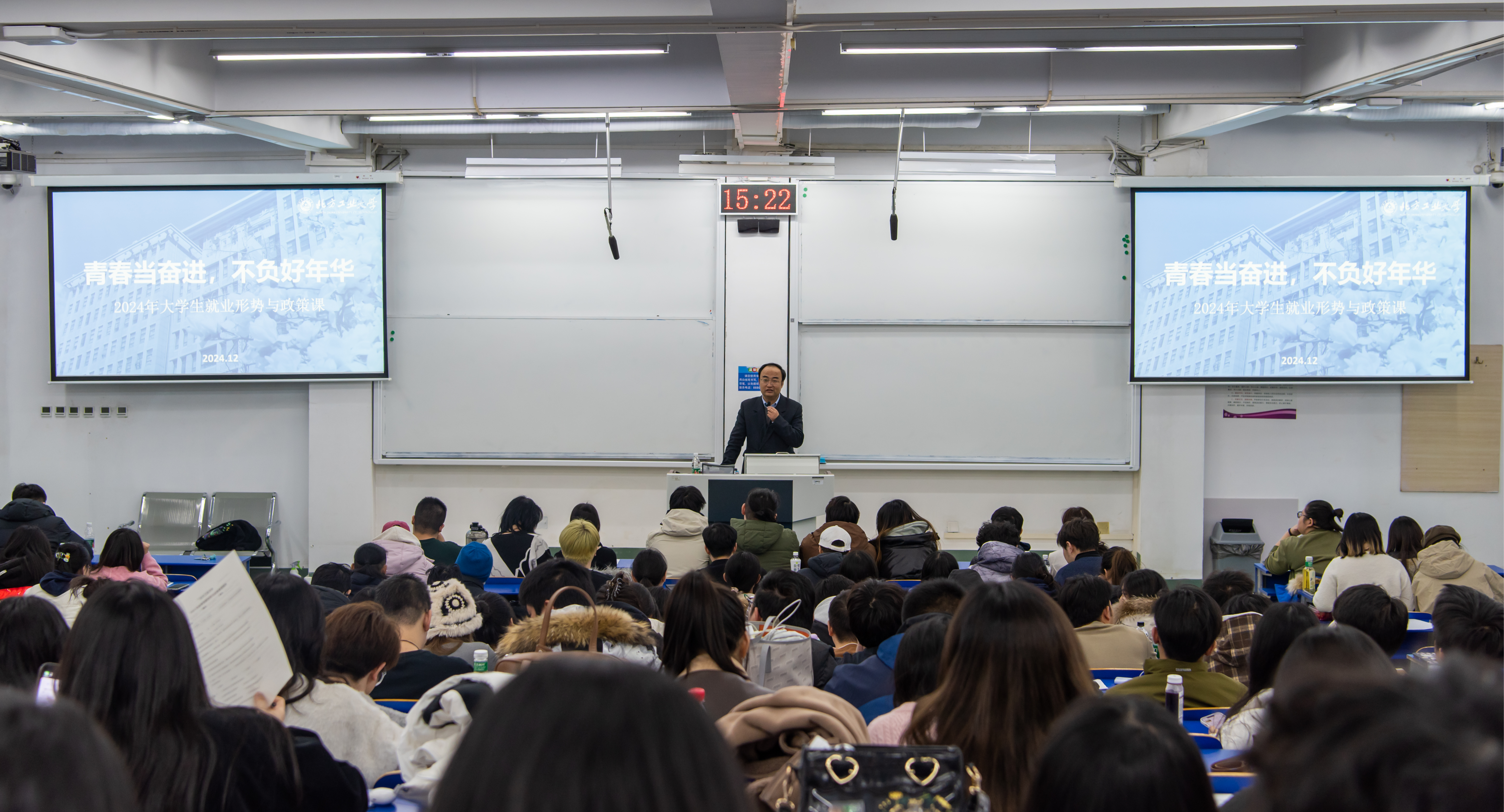 为深入贯彻落实全国教育大会精神和国家关于高校毕业生就业工作的决策部署,全力促进2025届毕业生高质量充分就业,12月6日下午,校党委常委、副校长王力在浩学楼东502教室为文法学院毕业生讲授“青春当奋进,不负好年华”主题就业形势政策课。文法学院党委副书记、年级辅导员、全体2025届贯通毕业生200余人参加了学习。王力带领大家深入学习了党的二十届三中全会和《关于实施就业优先战略促进高质量充分就业的意见》精神,从国家...