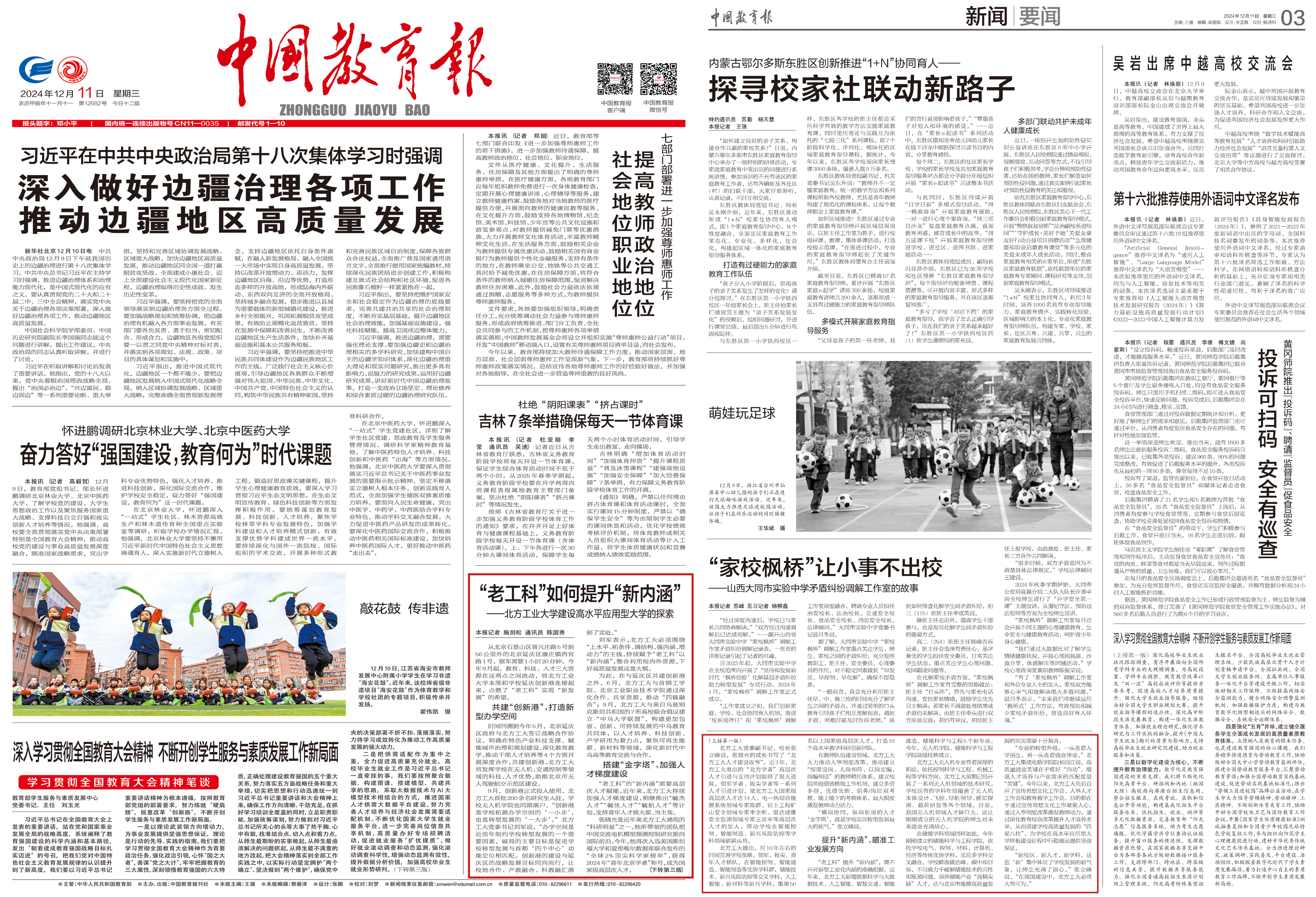 2024年12月11日,《中国教育报》在头版和第三版以《“老工科”如何提升“新内涵”——米兰milan官方网站建设高水平应用型大学的探索》为题,报道了米兰顺应高等教育改革潮流,紧扣“上水平、拓条件、调结构、强内涵、增动力”主线,推动传统工科院校转型升级,实现新校区、新人才、新学科、新博士点“四新”发展的生动实践。文章介绍了学校聚力打造新型办学空间、加强人才梯度建设、提升学科专业建设水平的典型做法和成效,是传统“...