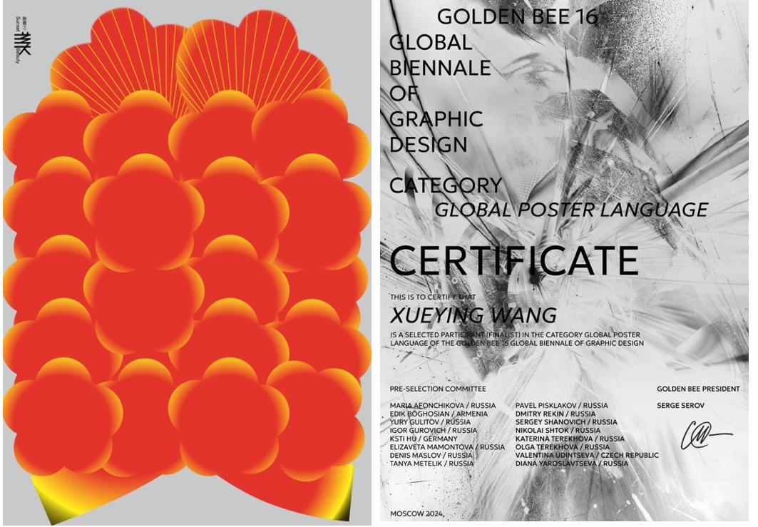 近日,平面设计界备受瞩目的金蜜蜂全球平面设计双年展揭幕,米兰建艺学院王雪莹老师作品入选类别一全球海报语言,作品在莫斯科佩列斯维托夫·佩列洛克画廊和莫斯科沙博洛夫卡画廊展出。(获奖作品及证书)该作品名为“青山绿水之美系列海报—晚霞”。设计概念是用汉字艺术之美,以“美”字和海洋生态结,表达人与自然和谐共生,构建人类命运共同体,人人有责,人人参与。金蜜蜂自1992年创立的莫斯科金蜂国际平面设计双年展(MOSCOWGL...