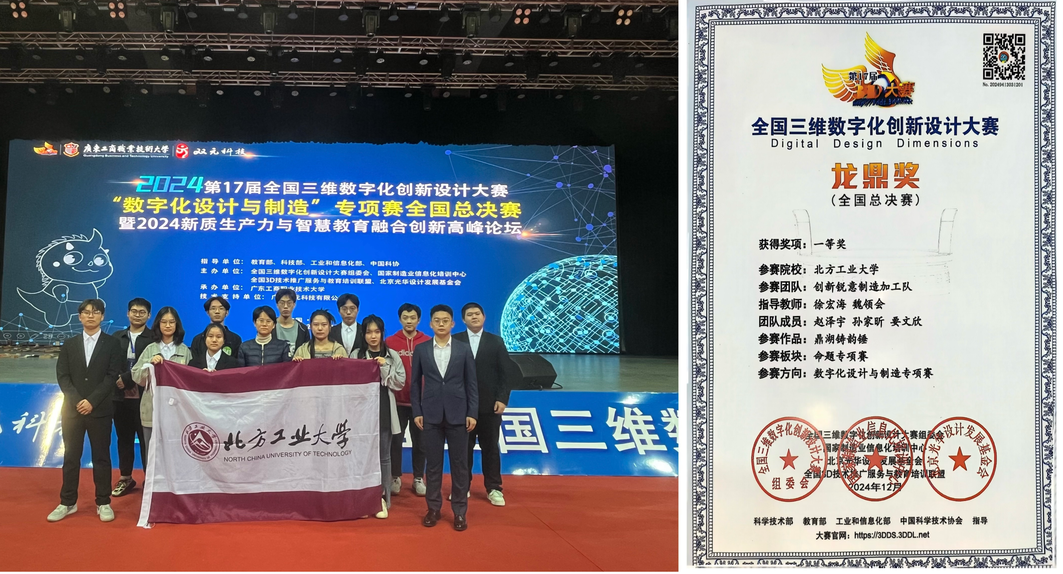 11月29至12月1日,2024全国3D大赛数字化设计与制造专项赛全国总决赛在广东省肇庆市落下帷幕,机材学院徐宏海、魏领会老师指导的4支参赛队不畏强手、奋力拼搏,获全国总决赛一等奖1项、二等奖1项、三等奖2项,其中赵泽宇团队获全国总决赛第1名。米兰获优秀组织奖,徐宏海老师获优秀指导教师奖。本次大赛由教育部、科技部、工业和信息化部、中国科协指导,全国三维数字化创新设计大赛组委会、国家制造业信息化培训中心、全国3D技...