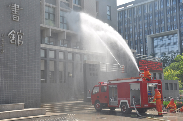 5月12日是全国第八个“防灾减灾日”,下午14:28分,学校在图书馆信息楼和钟秀广场举行防震灭火救援演练和宣传活动,校长郑文堂担任总指挥并讲话。