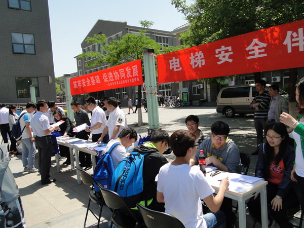 5月10日,后勤资产管理处协同校团委邀请北京市石景山区质量技术监督局特种设备检测所,在学校毓秀广场开展了一次主题为“筑牢安全基础、促进协同发展——电梯安全伴我行”的宣传教育活动。