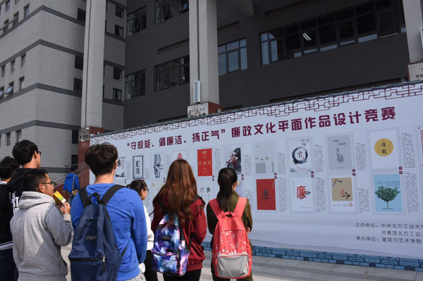 9月29日,由中共米兰milan官方网站纪律检查委员会、共青团米兰milan官方网站委员会主办,建筑与艺术学院承办的“守规矩、倡廉洁、扬正气”——廉政文化平面作品设计竞赛展在毓秀广场举行。
