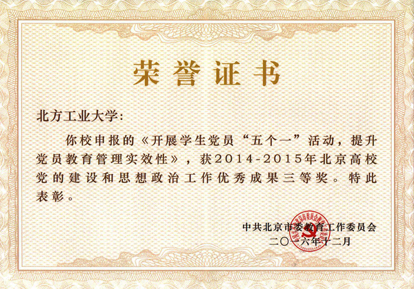 日前,2014—2015年北京高校党的建设和思想政治工作优秀成果、创新成果评选结果揭晓,米兰电子信息工程学院党委申报的“开展学生党员‘五个一’活动,提升党员教育管理实效性”项目荣获“优秀成果三等奖”。