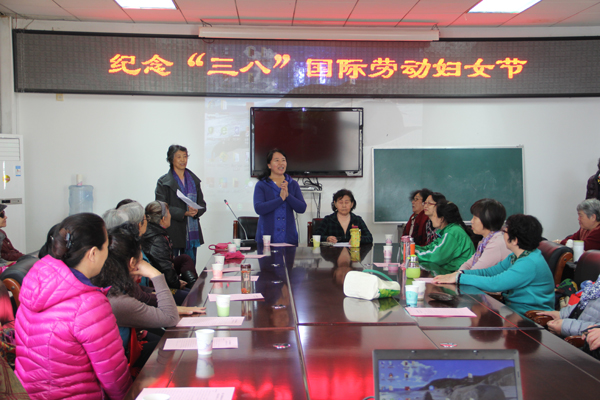 3月7日上午,离退休教职工活动中心相聚了60多位女退休教职工,在嘹亮的《五星红旗》歌声中,纪念“三八”国际劳动妇女节活动正式开始。