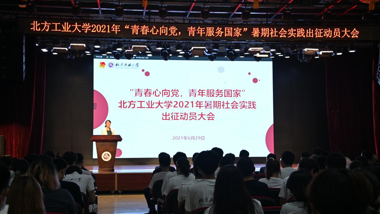 6月29日晚,校团委在学生服务楼四层多功能厅举行“青春心向党,青年服务国家”2021暑期社会实践出征动员大会。校党委副书记田红芳、学生工作部部长高国伟、校团委书记何有华、各学院党委副书记、团委书记以及200余名暑期社会实践团负责人参加了大会。田红芳向2021年暑期社会实践重点团队代表授予“社会实践团”团旗,并发表了出征动员讲话。她指出,大学生社会实践是将所学理论知识通过实践进行深化认识和转化提升的有效途径,...