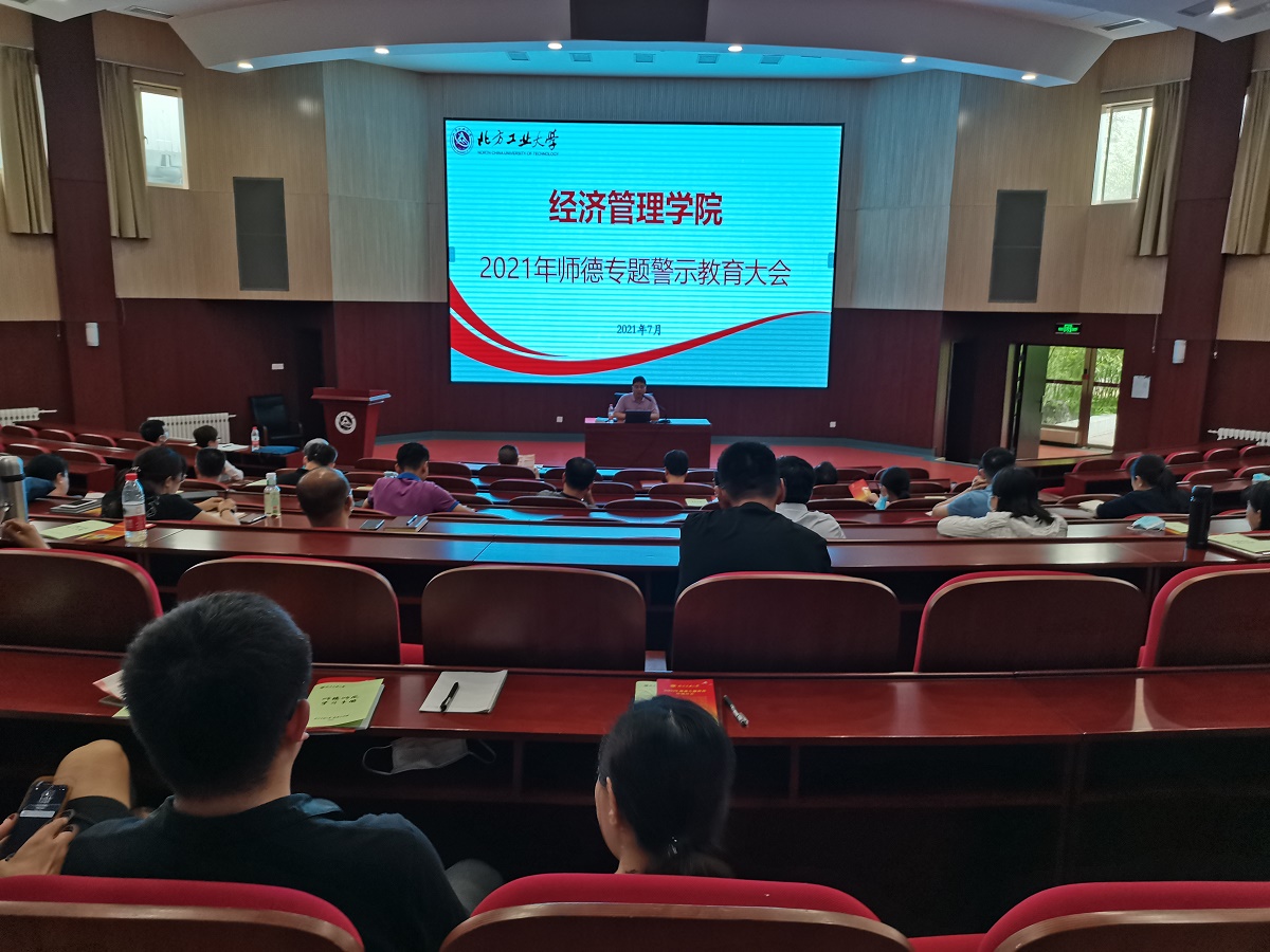 7月15日下午,经济管理学院组织全体教师召开师德专题警示教育会,并传达落实北京市教育系统“以案四说”警示教育会议精神和近期学校党委全委会(扩大)会议精神。学院党委书记王伟宾以深入贯彻落实习近平总书记“七一”重要讲话精神和传达落实北京市教育系统“以案四说”警示教育大会精神为主线,认真反思检视问题的根源,做到明警示、知敬畏、守底线、严规矩、强制度、促发展,号召全院教师将思想和行动统一到学校党委的统一部...