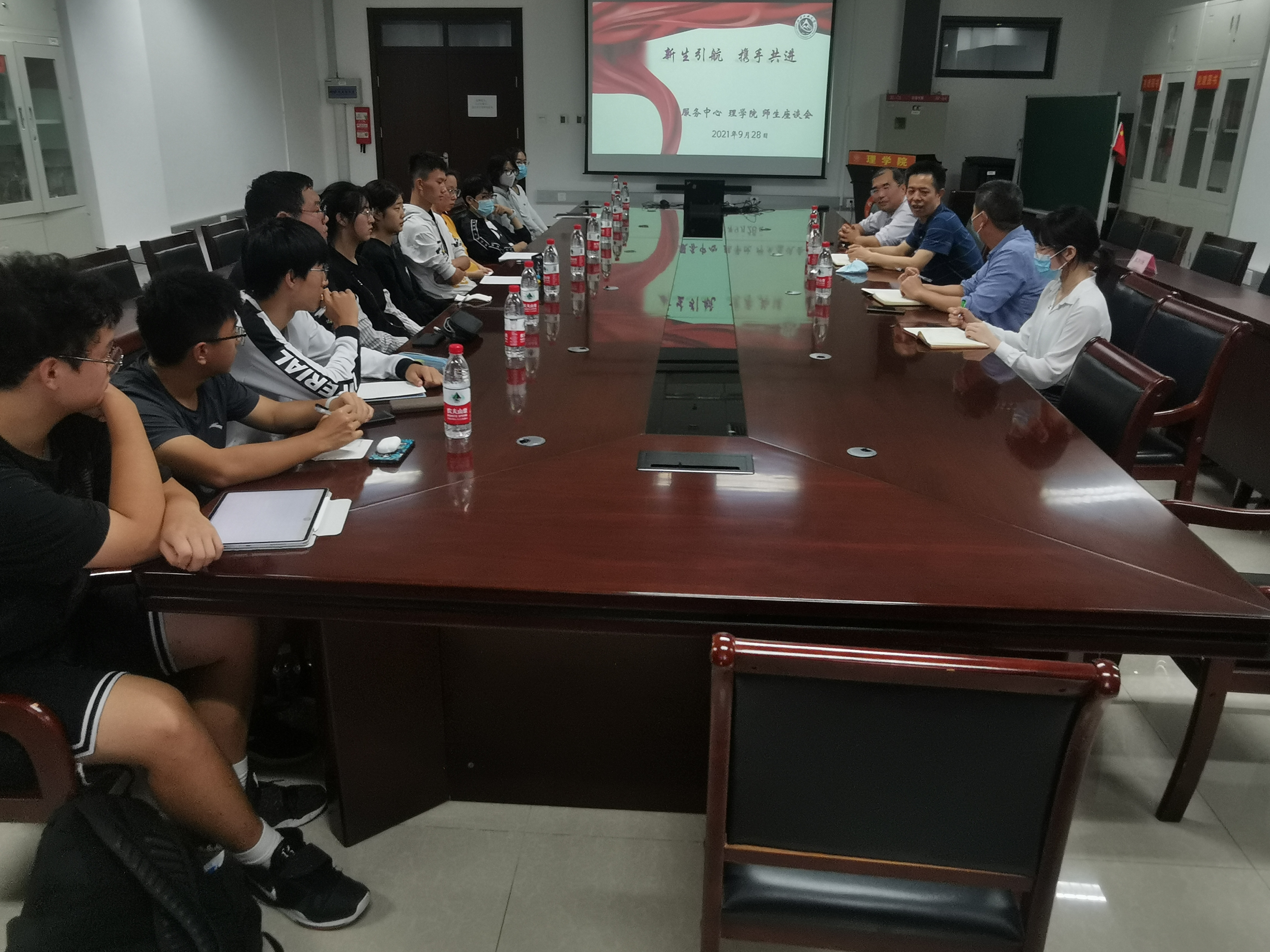 9月28日下午,服务中心与理学院共同举办“新生引航、携手共进”座谈会,畅谈大学生活,完善后期保障,帮助新同学迅速融入校园生活。各新生代表结合自己入校以来学习、生活等方面谈了自己的感受,并对就餐排队、超市购物、公用洗衣机、宿舍设施、购电等后勤方面遇到的问题进行了反馈,提出了合理化建议,服务中心总经理助理王群营针对同学们反馈的问题一一进行了解答。服务中心党委书记张加强向同学们简要介绍了学校服务中心各部...