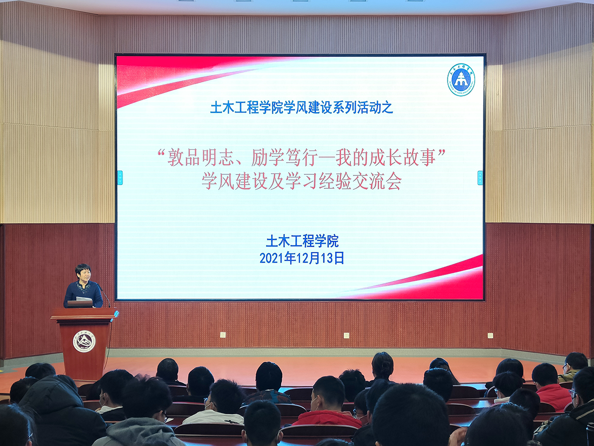 为进一步深入推进学院学风建设,12月13日晚,土木工程学院学风建设系列活动之“敦品明志、励学笃行----我的成长故事”学风建设及学习经验交流会在文化会堂举行,土木工程学院领导班子全体成员、辅导员、2021级班导师和2021级全体学生参加了本次交流会。会议由学院党委副书记张少波主持。会上,学院国家奖学金获得者夏雨欣、成梓煜、杨皓然和国家励志奖学金获得者刘亚馨相继上台与2021级同学们分享了自己的大学成长故事和学习生...