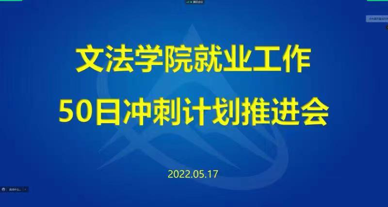 5月17日上午,文法学院召开2022届毕业生就业工作专题系主任会,推进落实就业工作“50日冲刺”计划。副校长王力、学院班子成员、各系主任、一级学科责任教授、全体辅导员、毕业班导师等共计20余人参加了会议。会议由学院党委书记袁凤识主持。各系主任逐一汇报了本专业毕业生就业进展情况。学院党委副书记刘霁炜就学院2022届毕业生就业工作整体进展及面临的工作挑战进行梳理,重点就学院就业工作“50日冲刺”计划目标实施方案进行...