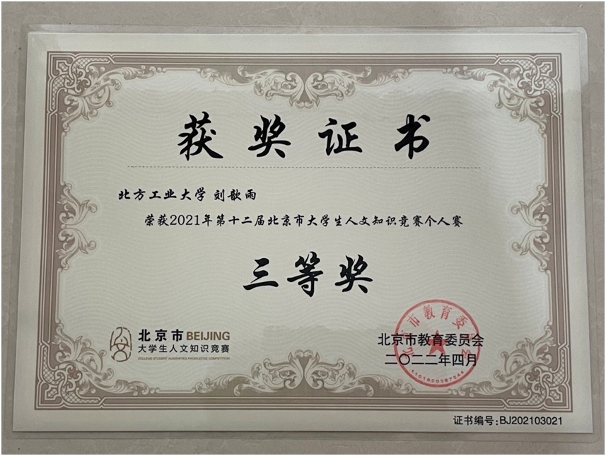 近日,第十二届北京市大学生人文知识竞赛个人赛成绩揭晓,米兰文法学院中文系学生刘歆雨获得三等奖。北京市大学生人文知识竞赛是由北京市教委主办的省部级A类学科竞赛,主要考察学生以文史知识为主的综合素质。米兰学生自2015年参加此项赛事,曾获团体二等奖1项,团体三等奖2项,个人赛二等奖3项,个人赛三等奖1项。受到疫情影响,本届大赛只举办了线上个人赛。米兰多年来一直高度重视以大学美育为核心的文化素质教育工作。疫情...