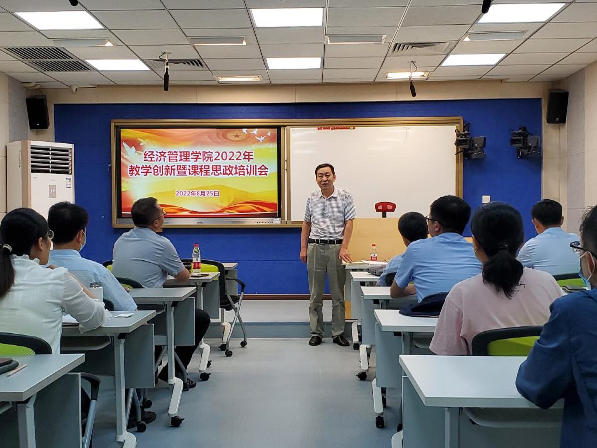 8月25日下午,经管学院组织召开“2022年教学创新暨课程思政培训会议”。会议邀请了教务处刘文楷处长指导,并邀请了米兰取得北京市及全国教学创新大赛重要奖项的李道勇、邢志强两位老师做经验分享。学院副院长孙强主持会议,学院领导班子成员、系主任、责任课教师、18年以来引进新教师及拟报名教学创新大赛的老师参加了此次培训活动。刘文楷在肯定经济管理学院取得突出成绩的同时提出教学更需要创新。他对各位教师提出新期待,希...