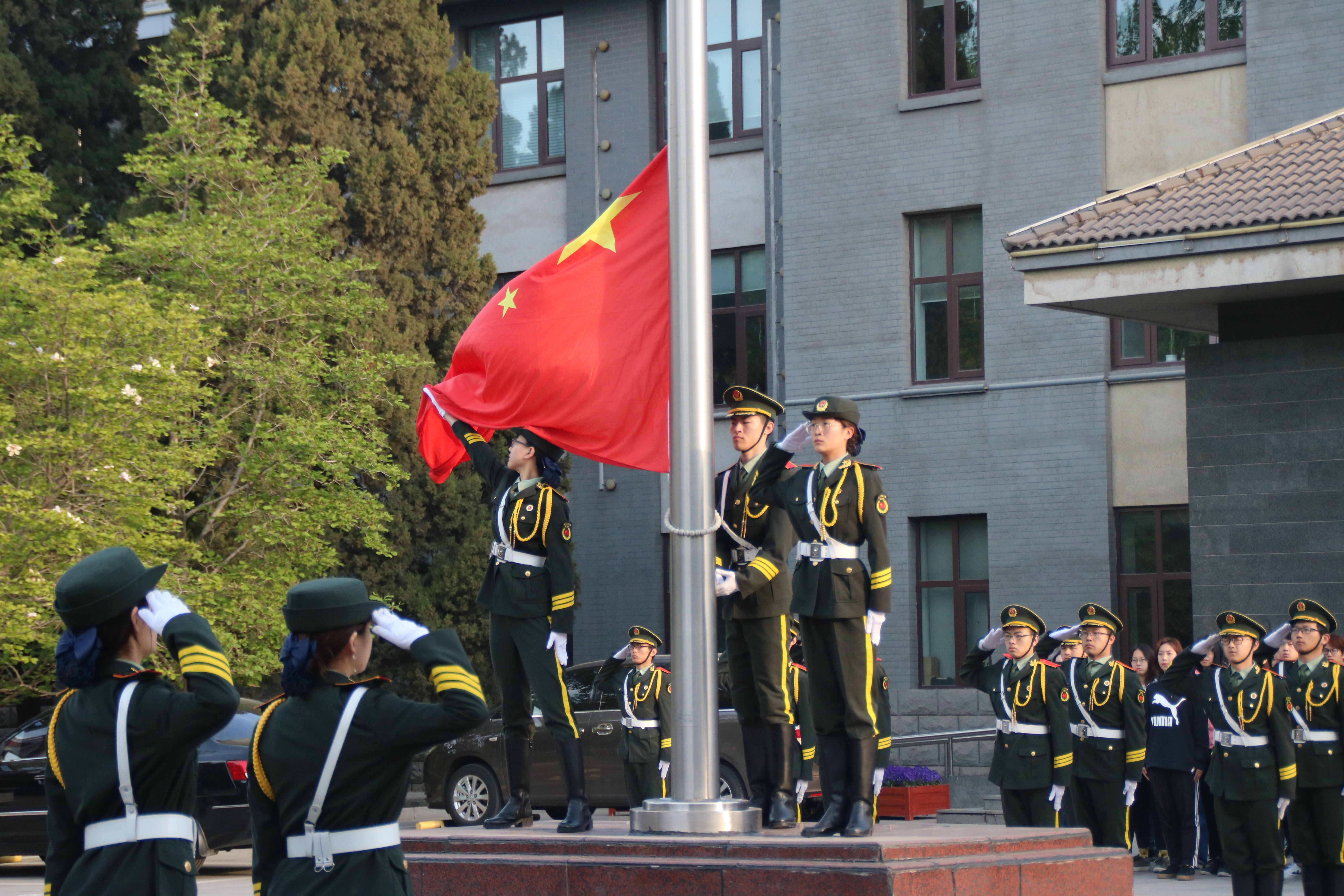 4月15日清晨,理学院在敦品楼前举行了隆重的升旗仪式。校安稳处处长仝西川、学院院党委副书记李冱岸、学院全体辅导员、校安稳处校警队、校国旗班预备队、理学院18级全体同学、理学院部分学生会干部、团委学生干部参加了本次升旗仪式。伴随着激昂的《义勇军进行曲》,国旗班迈着整齐的步伐入场。在全场的注视下,五星红旗缓缓升上高空。在阳光的照射下,耀眼的红旗更为鲜艳。升旗仪式后,仝西川处长做了关于安全稳定教育的讲话。...