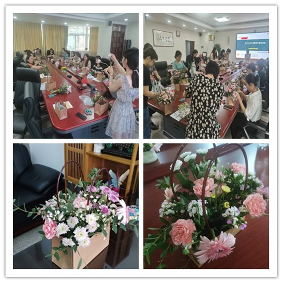 金秋九月,丹桂飘香。为庆祝第39个教师节,丰富教师业余文化生活,激发工作活力和凝聚力,提升教师欣赏美、创造美的能力,9月8日下午,经管学院分工会联合宁波银行石景山分行开展手工插花活动,20余位老师欢聚一堂,共话“师”情“花”语,共享温馨美好时光。活动中,在花艺老师的悉心指导下,老师们充分发挥着自己对美的想象和创意,迫不及待地拿起剪刀进行修枝剪叶,精心搭配。幸福花、康乃馨、小雏菊、满天星……在一片芬芳...