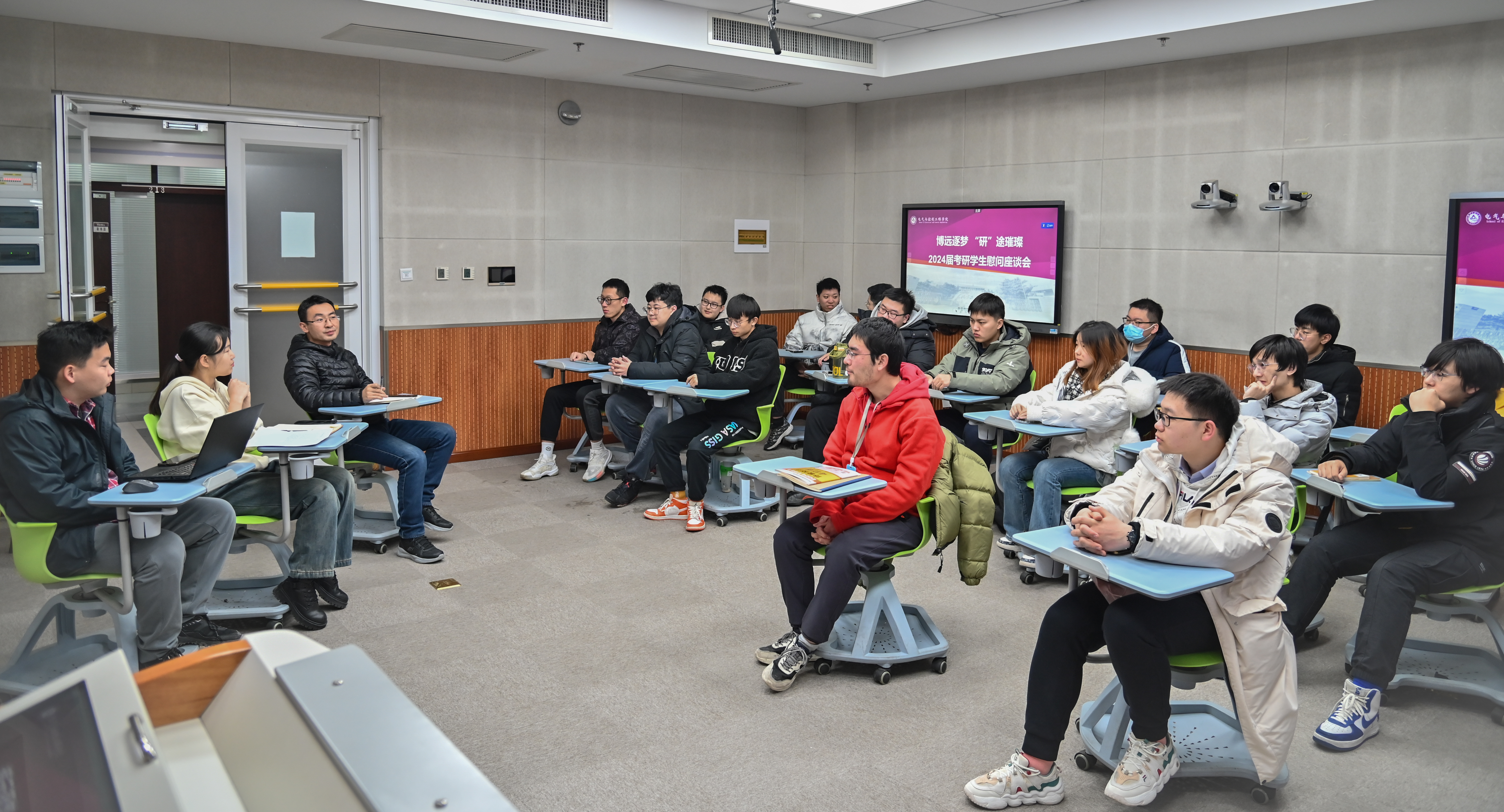 为鼓舞考研士气,舒缓考生备考压力,坚定考研信心,12月18日,电气与控制工程学院在博远楼234智慧教室举办2024届考研学生慰问座谈会,学院党委副书记王磊、辅导员范玥、23级研究生时晓勇以及20余名2024届考研学生参加了座谈。时晓学长从考试答题规范、注意事项、考试时间分配及考试技巧等方面给予同学们宝贵意见,强调了睡眠和饮食的重要性,他提醒同学们保持良好的作息和生活习惯。范玥老师叮嘱同学们在考研期间要注意身体,调...