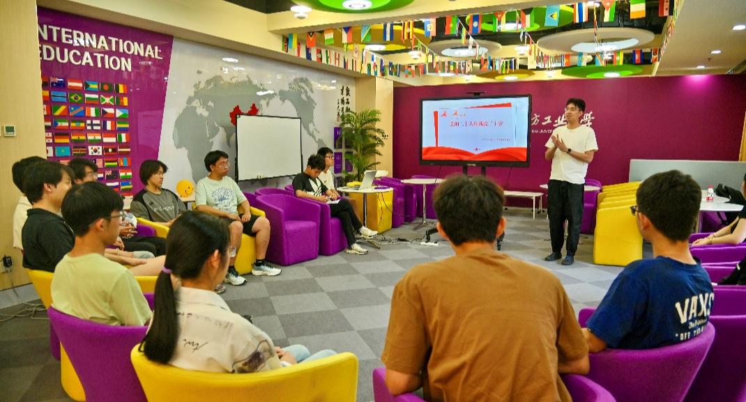 5月31日,电气与控制工程学院、马克思主义学院联合开展“党的二十大和我的二十岁”主题沙龙活动,马克思主义学院青年教师方霁、马理论研-22班方苧慧、电控学院团委副书记张浩洋和本月生日的同学参加了活动。方苧慧同学以“青春为中国式现代化挺膺担当”为主题,带领大家共同学习贯穿党的二十大报告全篇的一个关键词——中国式现代化。了解中国式现代化的理论来源、五个特征,引导同学准确理解、科学领悟中国式现代化的科学内涵...