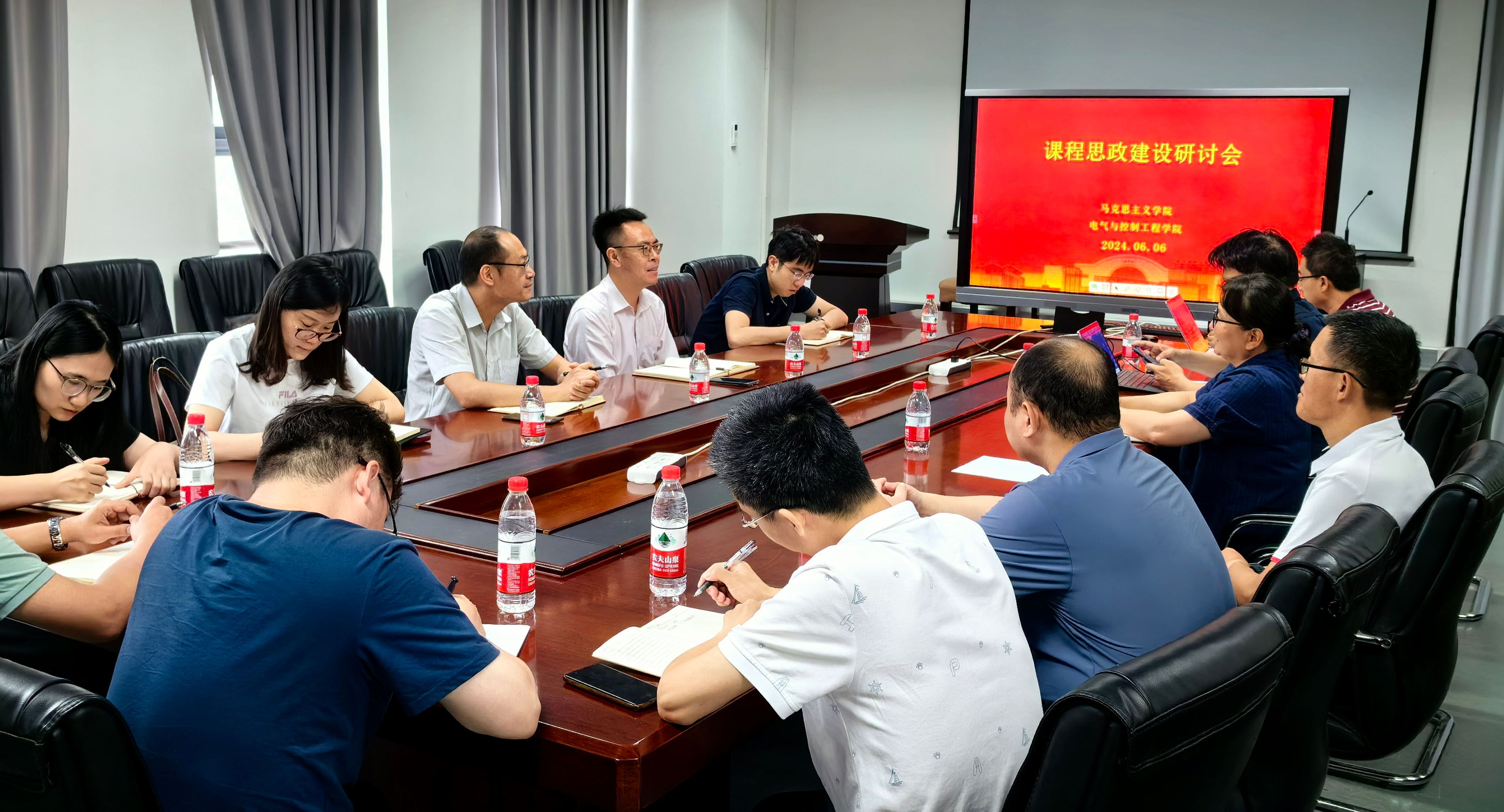 6月6日,电气与控制工程学院、马克思主义学院在博远楼554共话“课程思政”建设。教务处处长宋威、马克思主义学院副院长王润稼及思政课教师兰超、方霁、彭利,电控学院各系主任、专业导论课教师参加会议,会议由电控学院党委书记李颖宏主持。李颖宏表示,学院坚持以立德树人为根本任务,持续推进“课程思政”建设,扎实开展课程改革与课程实践,并取得了一定成效。她希望在学校教务处与马克思主义学院的帮助下,进一步将学院的“...