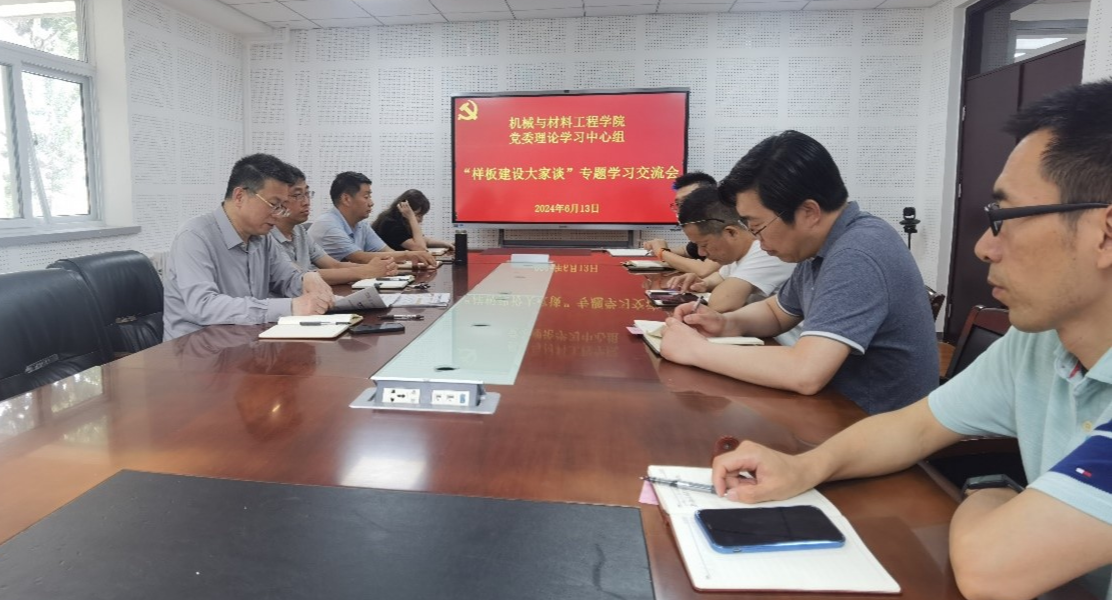6月13日,机械与材料工程学院党委理论学习中心组召开“样板建设大家谈”专题学习交流会。与会人员围绕“样板建设”主题,根据建设“样板学院”的目标要求,结合本职工作,进行了深入的交流和探讨。学院全体党委委员、系/中心主任参加会议。在会上,大家对照“样板建设”要求,查找短板、明确目标,交流了自己对样板建设的认识和看法。副院长刘东梳理了学院教学、教改、课程思政和学科竞赛等方面工作,提出了进一步凝炼特色、打...