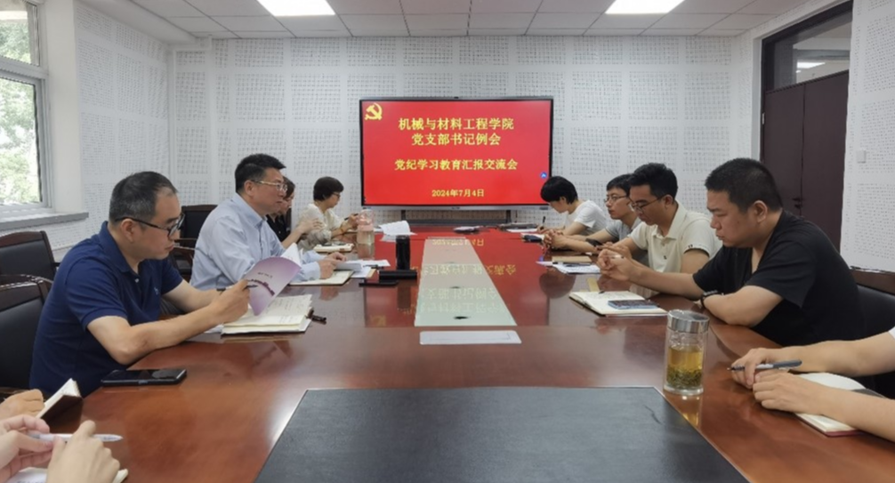 7月5日下午,机械与材料工程学院在博才楼203会议室召开党支部书记例会,汇报交流党纪学习教育情况。全体党支部书记参加会议。会上,学院各党支部汇报交流了本支部开展党纪学习教育的情况。学院各党支部认真贯彻落实学校党委《党纪学习教育计划》,通过原原本本学习《中国共产党纪律处分条例》、分享学习心得体会、通报警示案例、观看微视频、收看专题报告、支部书记上专题党课等多种形式,结合学校“样板建设”和当前学院中心工...