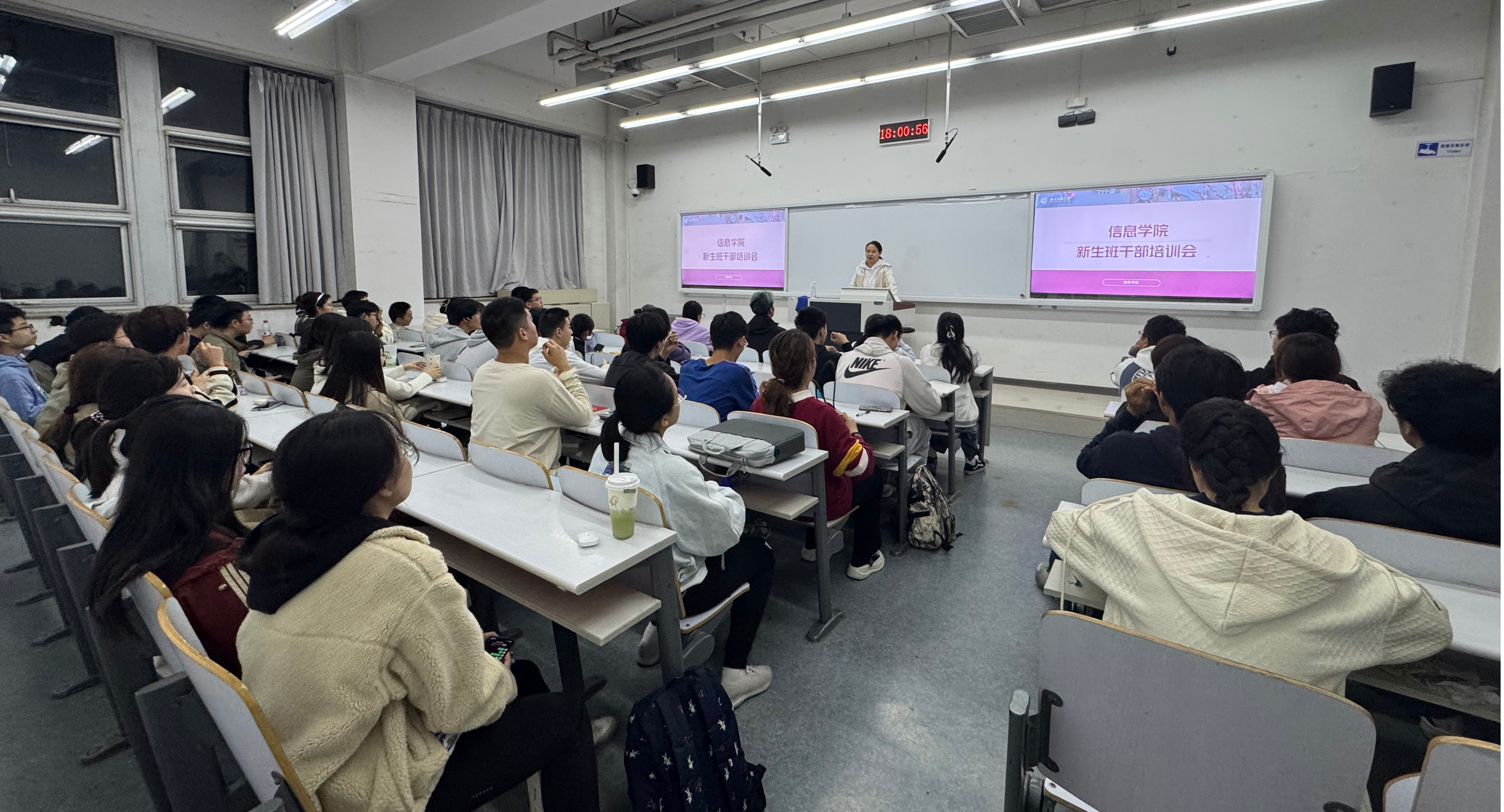 为进一步加强2024级新生班级管理,提升新生班委的综合素质和服务管理能力,帮助班委明确班级工作定位和工作职责,信息学院于10月16日在瀚学203教室开展2024级班委培训会,全体新生班委参加,活动由辅导员王鑫淼、陈煦婷主持。计类辅导员陈煦婷为新生班委讲解相应的班委职责。例如班长应负责班级全面工作,及时传达学校各项政策,配合班导师和辅导员开展班级工作。与各班委保持密切联系,协助任课老师维护教学纪律,调动同学们的...