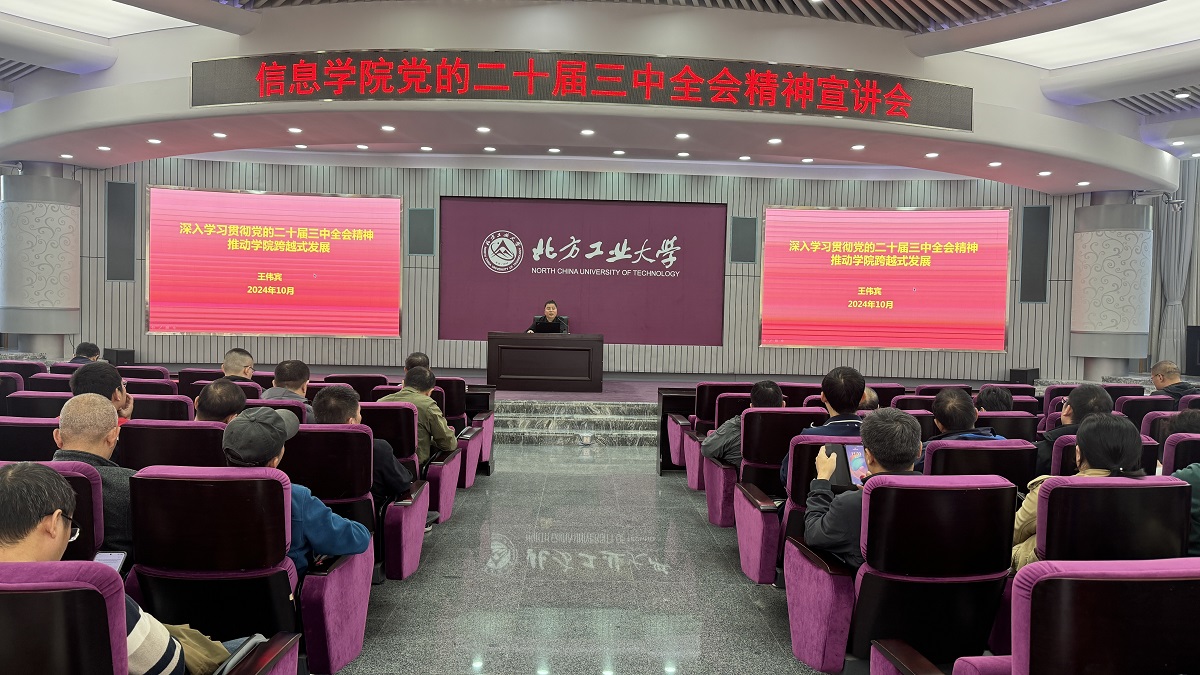 为深入学习贯彻党的二十届三中全会精神,引导学院广大师生将思想和行动统一到党中央的决策部署上来,推动学院事业高质量发展,10月15日上午,信息学院在广学楼报告厅召开深入学习贯彻党的二十届三中全会精神宣讲会,学院党委书记王伟宾作宣讲,全体教职工参加。王伟宾为全院教师作了题为《深入学习贯彻党的二十届三中全会精神推动学院事业跨越式发展》的宣讲。他从深刻认识党的二十届三中全会的时代背景和重大意义、全面准确理...