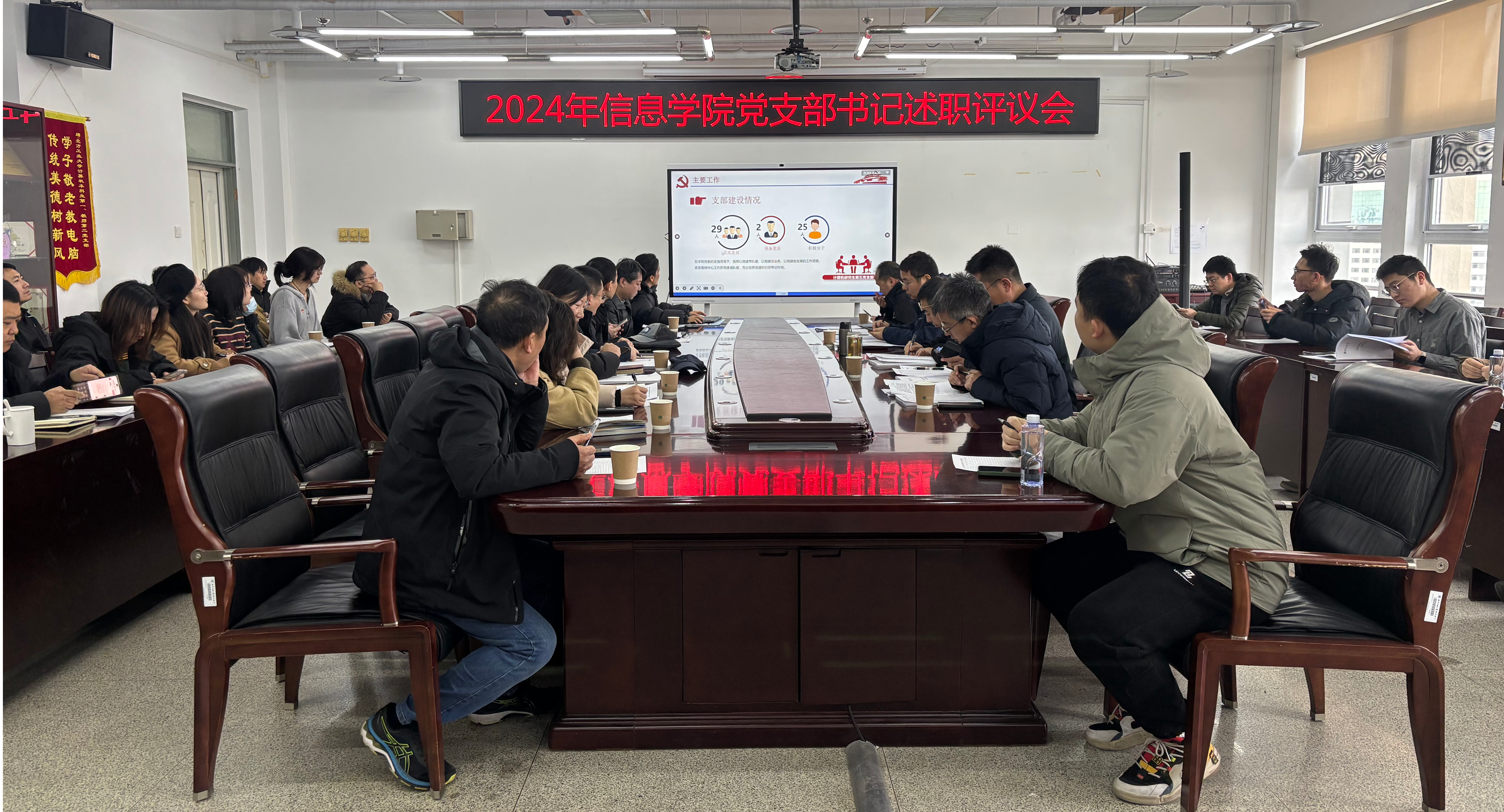为进一步落实管党治党主体责任,夯实基层党建工作根基,信息学院党委于2月21日上午在瀚学楼1014会议室召开2024年度党支部书记述职评议会。会议由学院党委书记王伟宾主持,学院党委委员、各党支部书记参加了会议。会议采取现场述职和书面述职结合的方式,选取14个党支部进行现场述职,其余党支部书面述职。现场述职中各位党支部书记聚焦基层党建主题,对标党的二十大关于增强党组织政治功能和组织功能的要求,对过去一年的工作进...