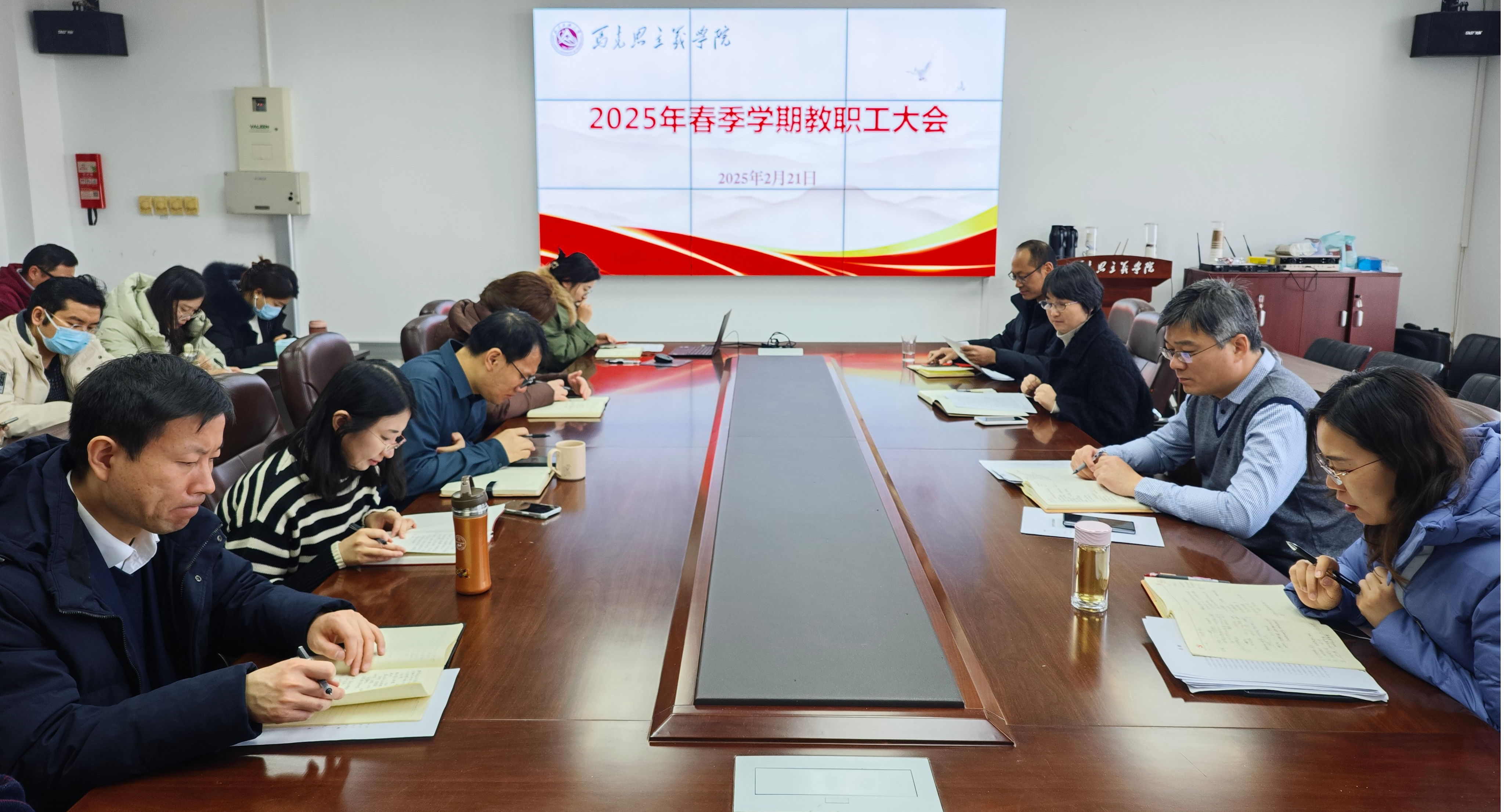为明确新学期工作方向,进一步凝心聚力,全力推进学院各项工作落地见效,2月21日上午,马克思主义学院召开2025年春季学期全体教职工大会。会议第一阶段,传达上级精神,总结前一阶段工作,部署安排新学期任务。学院党委书记王引领学了北京市教育大会精神,通报了学院领导班子2024年民主生活会情况。她要求学院全体教师要深入学习贯彻习近平总书记关于教育的重要论述,贯彻落实全国教育大会精神和《教育强国建设规划纲要(2024-...