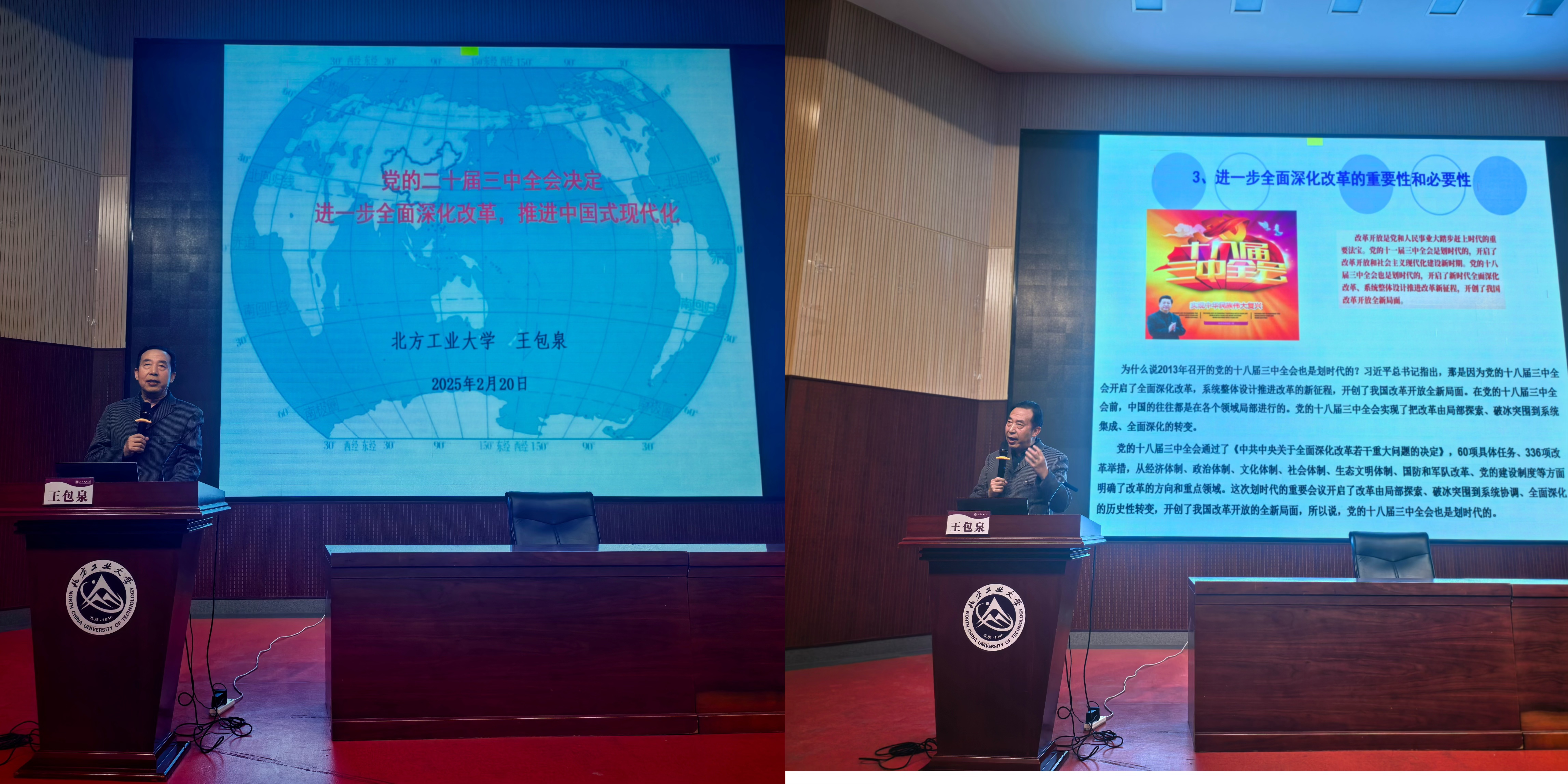 为深入学习贯彻党的二十届三中全会精神,机械与材料工程学院于2月20日在文化会堂举办专题学习报告会,邀请米兰离退休党委委员、思政教育资深专家王包泉以“党的二十届三中全会决定——进一步全面深化改革,推进中国式现代化”为题,为全体教职员工做党的二十届三中全会精神学习报告。王包泉从党的二十届三中全会擘画全面深化改革新蓝图、新时代我国科技领域成功跨入全球创新型国家行列两个核心维度展开论述。他详细解读了党的...