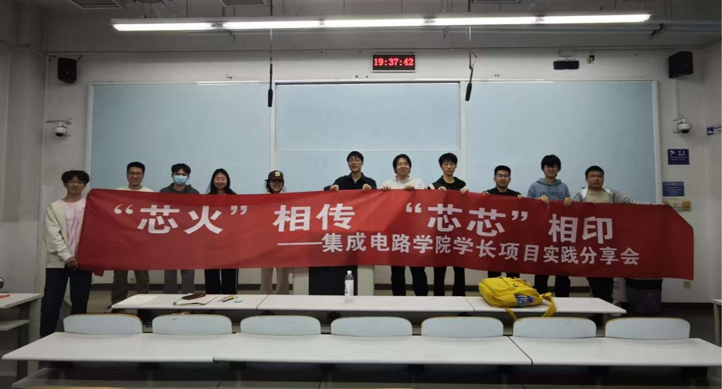 4月17日下午,集成电路学院在瀚学楼104成功举办“芯火相传·创芯启航”优秀学长项目分享会。本次活动邀请张恩鑫、郭竞天两位优秀学长进行项目的实践经验分享,系统讲解从立项筹备到技术落地的全流程。学院近70名本科生参加,现场互动热烈,学习氛围浓厚。会上,张恩鑫、郭竞天分别以"运算放大器的芯片设计验证与测试"、"数智域言"为案例,深入浅出地讲解项目开发过程中的关键环节,通过流程图展示、代码片段解析和相关视频播放等...