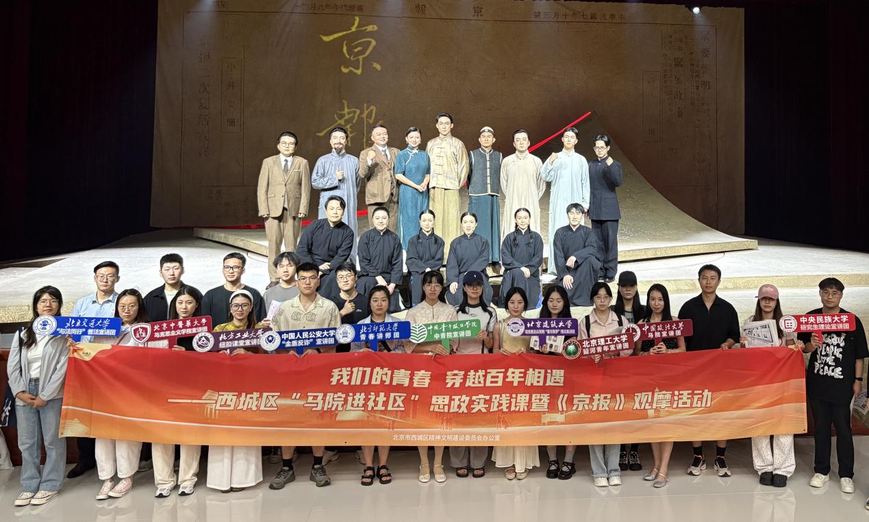 6月27日,人工智能与计算机学院“纽扣课堂”宣讲团在辅导员田庆玥带领下,走进西城区文化地标,集体观摩红色题材原创话剧《京报》。这部以革命先驱邵飘萍为主角的戏剧,通过极具张力的艺术表达,再现了民国初年报人以笔为枪、坚守真理的壮烈人生,在青年学子中引发强烈共鸣,成为一堂别开生面的“艺术思政课”。舞台上,邵飘萍追求光明、不畏强权的精神如烈火般点燃了年轻观众的心灵。宣讲团成员唐瑭悦感慨:“邵飘萍用生命守护...
