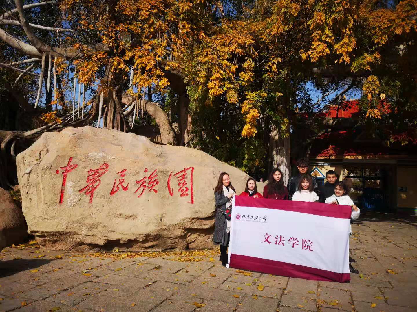 “五十六个星座五十六支花,五十六族兄弟姐妹是一家,五十六种语言汇成一句话……”这首优美的歌曲,唱出了民族大团结的共同心声。为引导新疆籍少数民族新生走进民族文化,了解中华各民族文化特色和风土人情,增强民族自豪感,增进爱国情感和民族意识。11月10日,文法学院新疆籍少数民族学生在内派少数民族辅导老师阿怡江的带领下,前往中华民族园参观考察。同学们抵达民族园后,首先由北园进入参观,通过民族大桥步入南园,依...