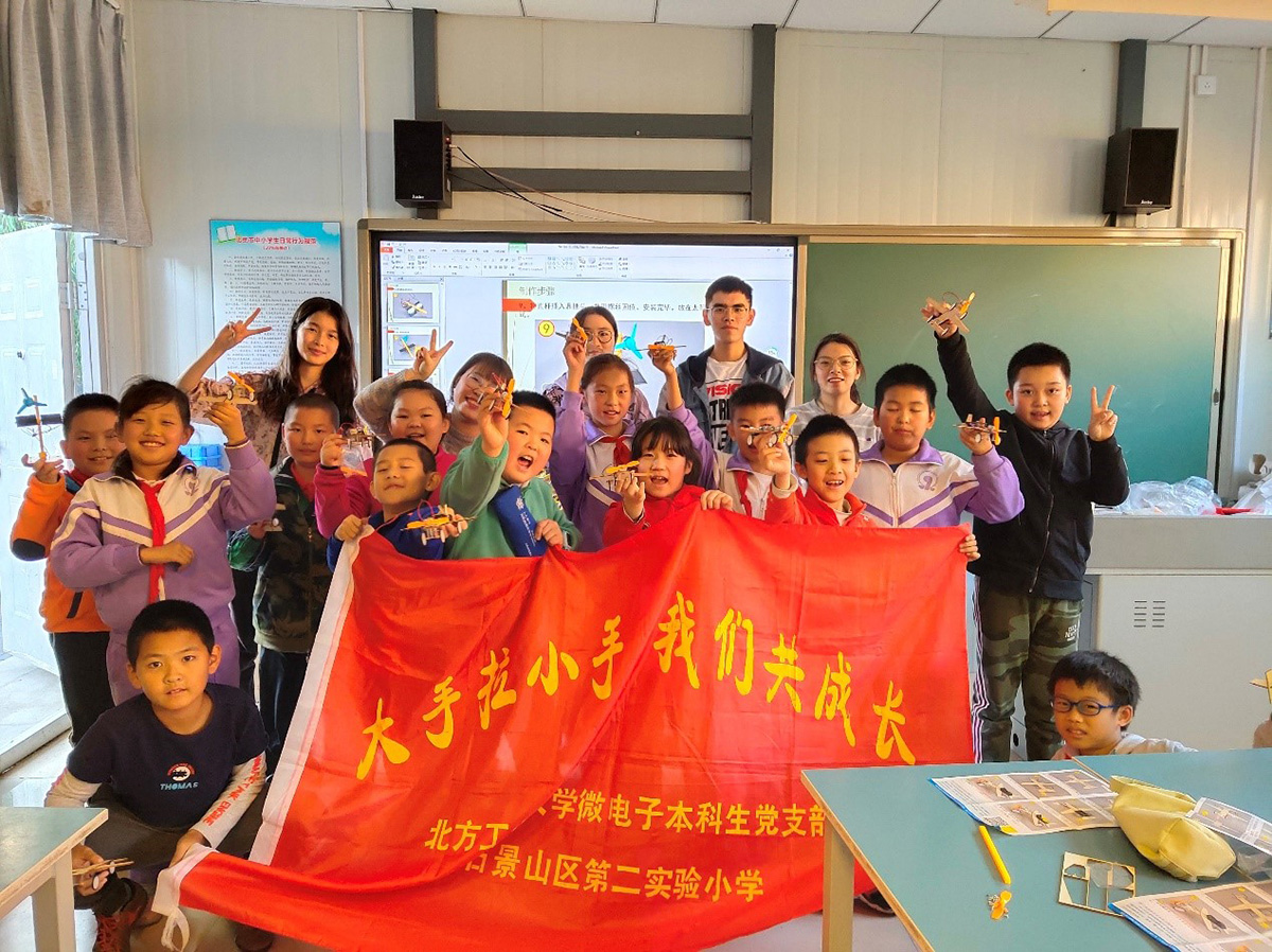 近日,信息学院微电本科学生党支部与石景山区第二实验小学开展了“大手拉小手,我们共成长”为主题的共建活动。微电本科学生党支部党员到石景山区第二实验小学为小学生们准备了一堂生动的交通运输工具知识普及讲座,用形象有趣的讲解让小学生们了解了现代交通工具的工作原理,同时,带领小学生们亲手制作飞机和汽车模型,在具体实践中验证所学的知识,引导小学生们经历了一场有意义、有价值的科学探究学习体验。此次活动...