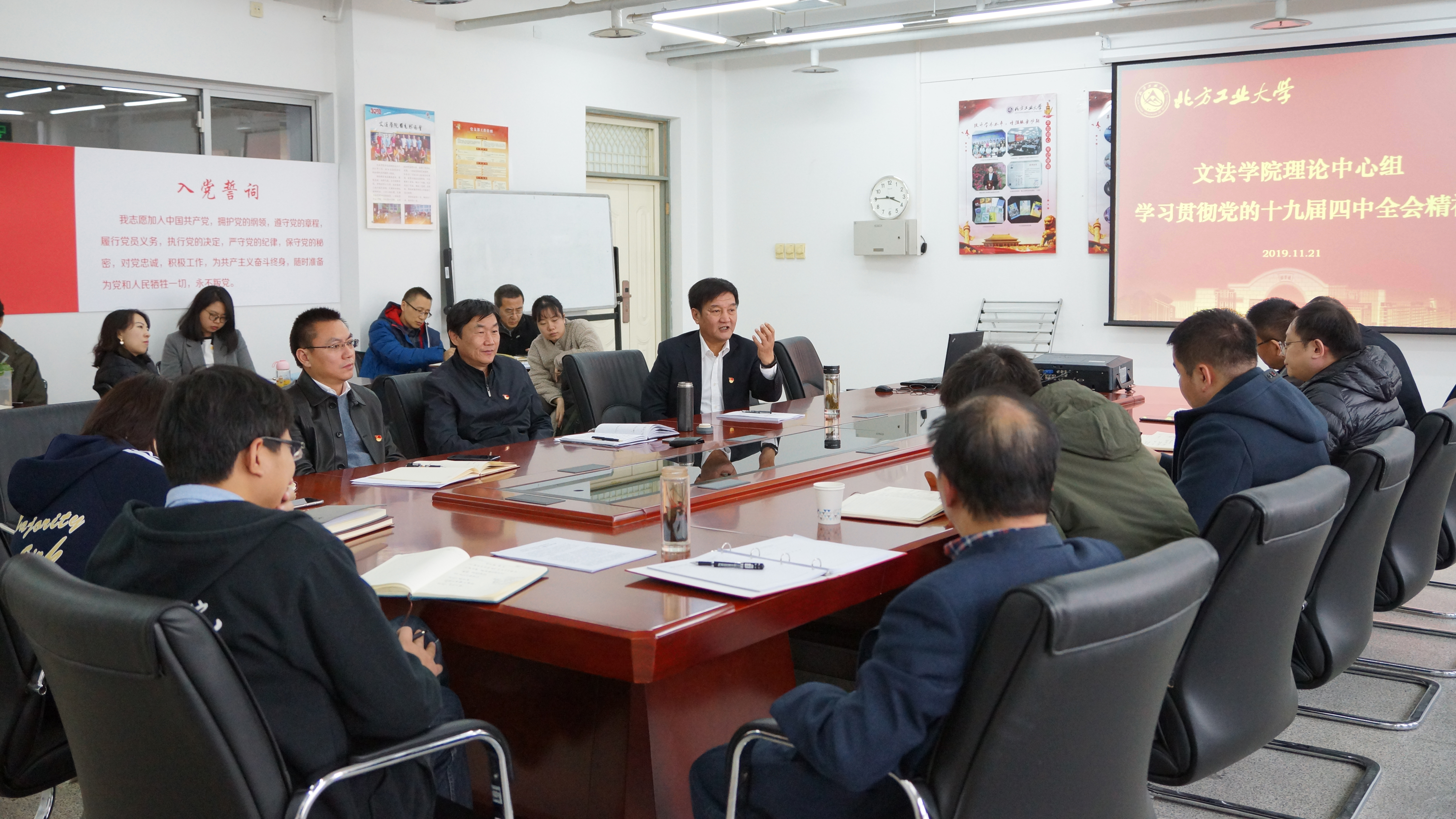 11月21日下午,文法学院党委中心组在学院党员之家组织党的十九届四中全会精神专题学习会,学院领导班子成员、党委委员、各党支部书记、系(中心)主任和辅导员参加了专题学习,学院院长刘泽军做了主题报告,学习会由学院党委书记袁本文主持。会上,刘泽军院长带领大家一起学习了《中国共产党第十九届中央委员会第四次全体会议公报》和《中共中央关于坚持和完善中国特色社会主义制度、推进国家治理体系和治理能力现代化若干重大...