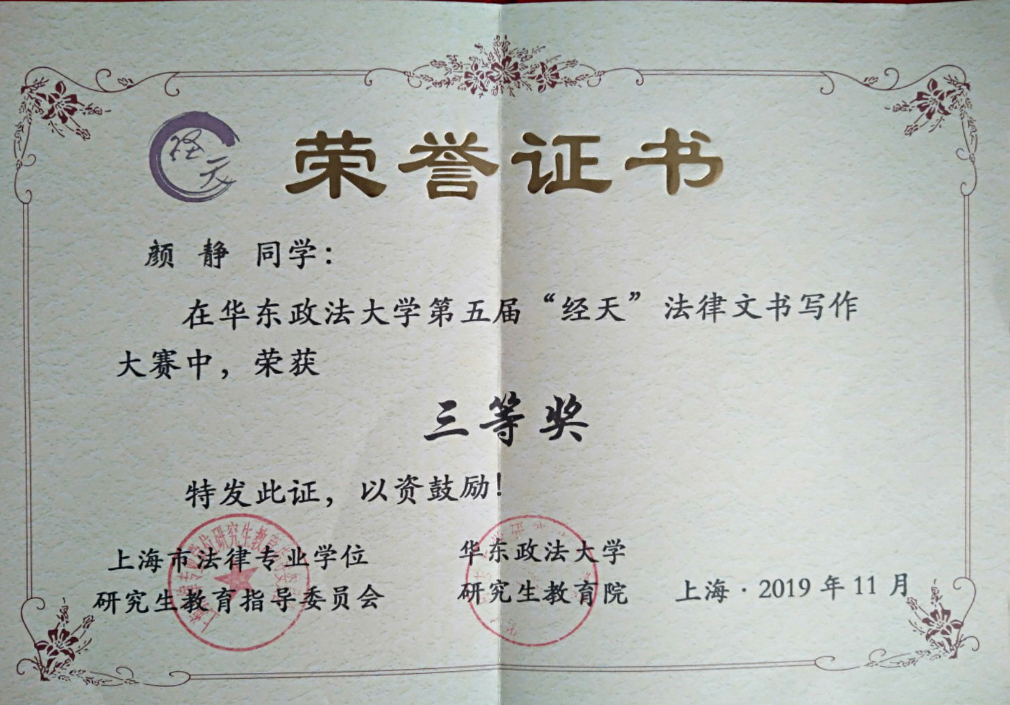 米兰2019级法律硕士研究生颜静在第五届“经天杯”法律文书竞赛中,充分展现法学学子的精神风貌和专业素养,过关斩将,从599位选手中脱颖而出,跻身前六强,荣获三等奖。“经天杯”法律文书竞赛是上海市法律专业学位研究生教育指导委员会和华东政法大学研究生教育院主办,华东政法大学法律硕士教育中心承办的全国性比赛。本次大赛有来自北京大学、同济大学、复旦大学、华东政法大学等57所高校数百名选手参赛。该项成绩的取得得益...