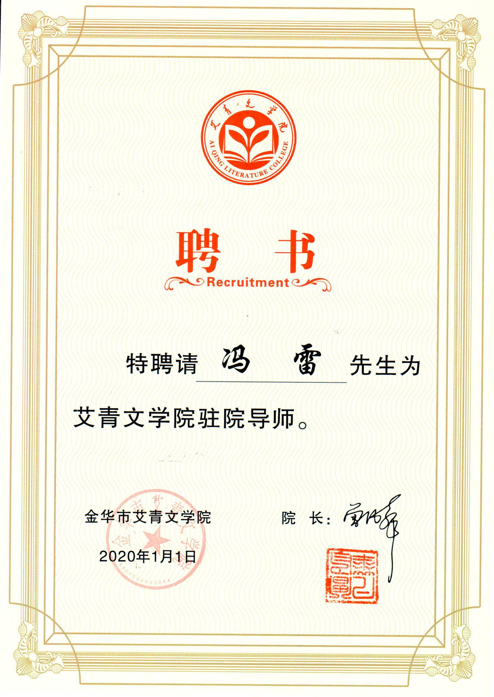 近日,米兰文法学院中文系教师冯雷被艾青文学院聘为驻院导师。艾青文学院位于艾青的故乡浙江金华,成立于2014年,院名由艾青夫人高瑛亲笔题写。艾青文学院聘请国内著名诗人、作家、评论家担任驻院导师,以繁荣社会主义文学事业,培养文学人才为己任。艾青是中国新诗的奠基人之一,早年留学法国,上世纪三十年代起投身革命文艺运动,创作了《大堰河——我的保姆》《雪落在中国的土地上》《北方》《向太阳》等,新中国成立后曾...