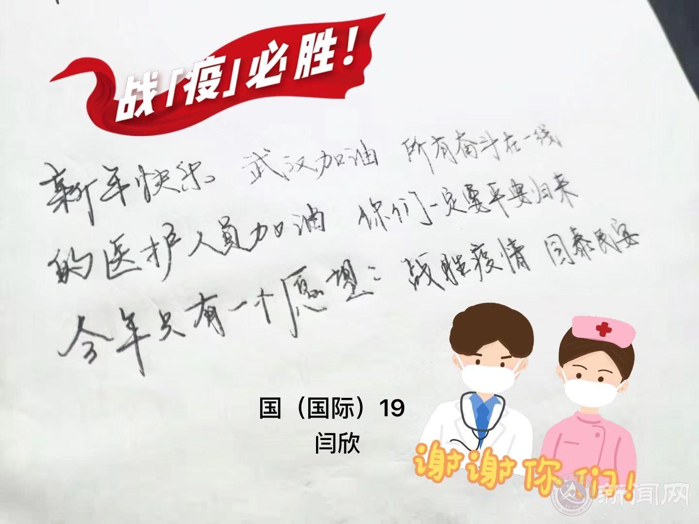 新型冠状病毒肺炎疫情的肆虐牵动人心,全国人民紧密团结,奋力抗“疫”。在这场没有硝烟的战争中,“逆行者”们不分昼夜地与疫情进行抗争。为此,经济管理学院团委学生会第一时间发布了《致全院团员青年的一封信》,并开展了以“爱是永恒”为主题的手绘手写原创活动。同学们手写加油话语,对一线工作者们表达感谢,并为武汉祈福加油。“没有一个冬天不可逾越,没有一个春天不会到来。”、“愿山河无恙,人间皆安。”、“向奋战...