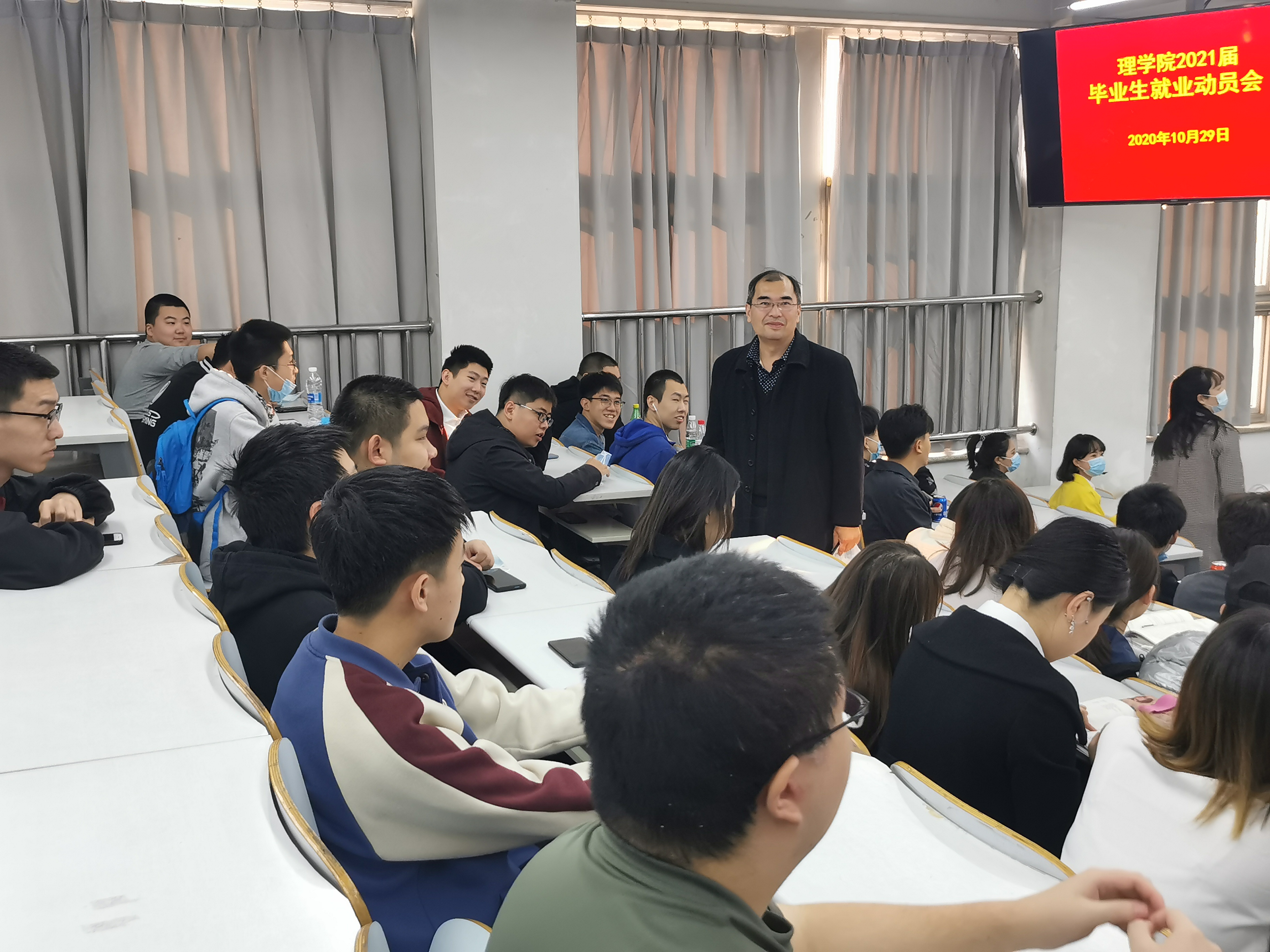10月29日下午,理学院召开2021届毕业生就业动员会,2021届全体毕业生参加了会议。学院党委副书记李冱岸做了就业动员。李冱岸副书记向毕业生介绍了学院近几年就业情况,重点就当前疫情对就业可能带来的影响和同学们进行了交流。他要求同学们要树立正确的就业观,全体毕业生不管是考研、出国还是找工作,一定要结合自身实际情况,准确定位,积极就业。他希望考研的同学,在当前升学的黄金时间,要把握时机,奋力拼搏,从而实现自...