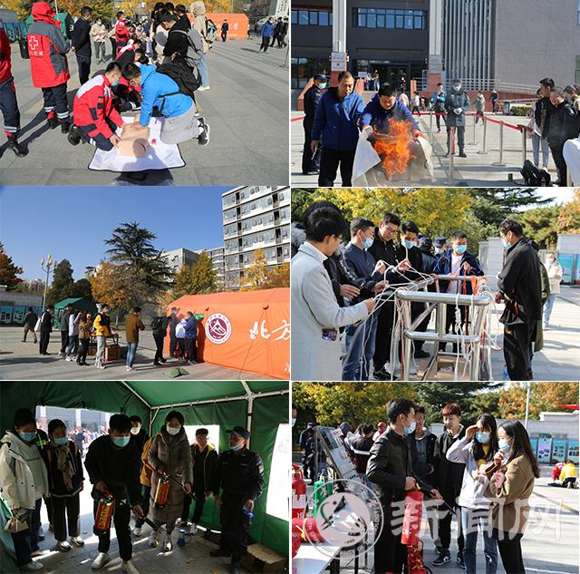 11月2日至3日,学校在毓秀广场开展了模拟火场逃生、模拟灭火器灭火、打绳结、油锅灭火等项目的实操演练,展示了消防知识展板和消防报警救援设备。特别邀请了北京市红十字会军红救援队,为活动增设心肺复苏、外伤包扎和自动体外除颤器(AED)使用等科目,专业队员的理论讲解、实操示范,深受广大师生的欢迎。发放各类消防宣传品3000余份,提升广大师生关注消防、参与消防、学习消防、宣传消防的意识。