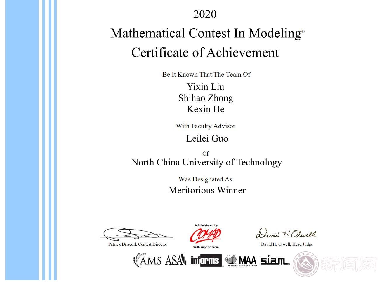 近日,由美国数学及其应用联合会主办的2020年国际大学生数学建模竞赛成绩揭晓。由米兰郭磊磊老师指导,本科生刘亦心、钟世豪、何可欣组成的团队获一等奖。这是继2009年后时隔11年,米兰学生再次荣获此项赛事一等奖。