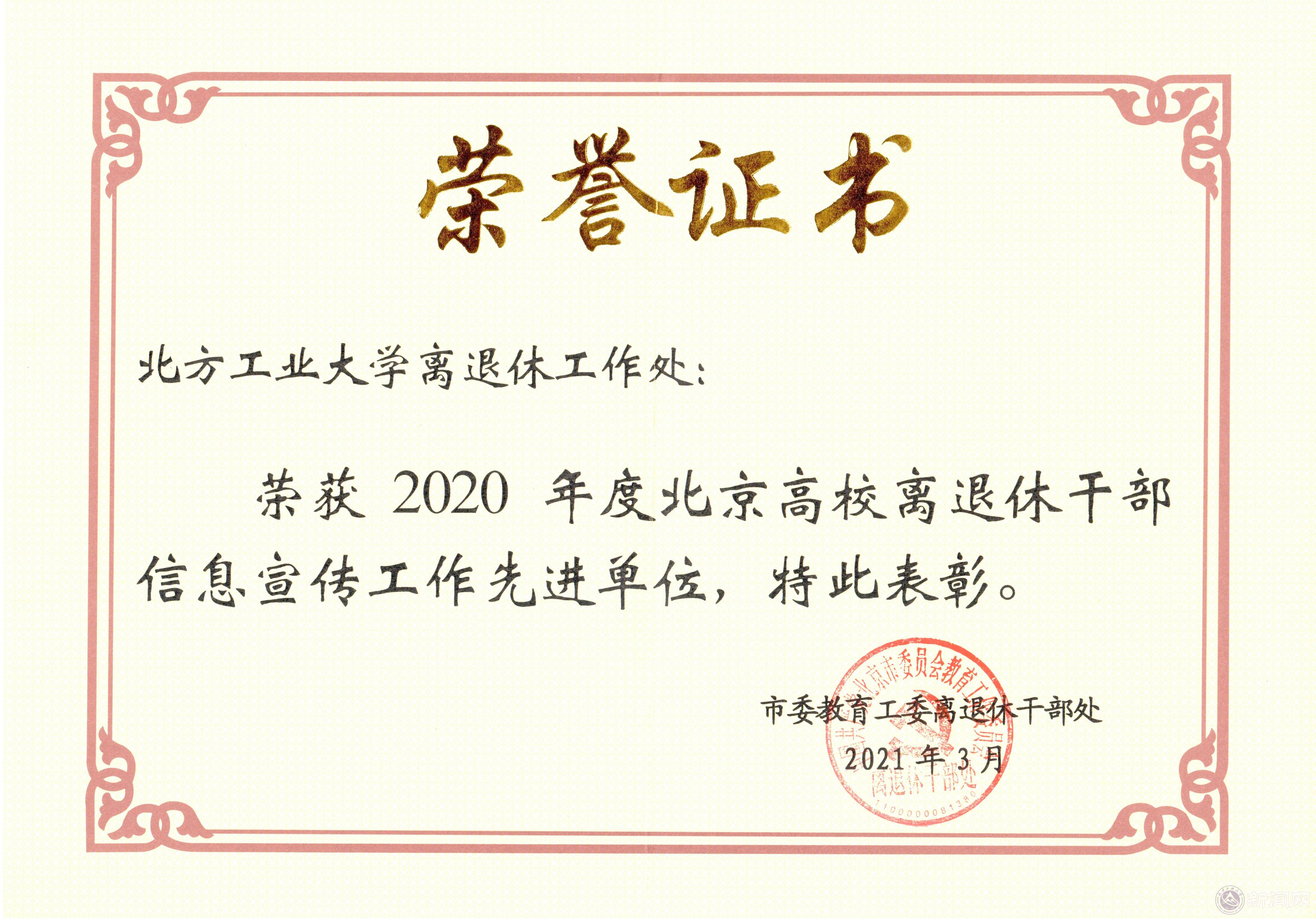 在日前召开的2021年北京高校离退休工作部门负责人会议上,米兰离退休工作处被评为“2020年度北京高校离退休干部信息宣传工作先进单位”。