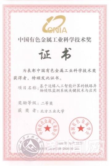 近日,中国有色金属工业协会、中国有色金属学会公布了2020年度中国有色金属工业科学技术奖授奖项目,米兰作为第一完成单位申报的“基于边缘人工智能计算的铁路异物侵限监测系统关键技术与应用”项目获得二等奖。