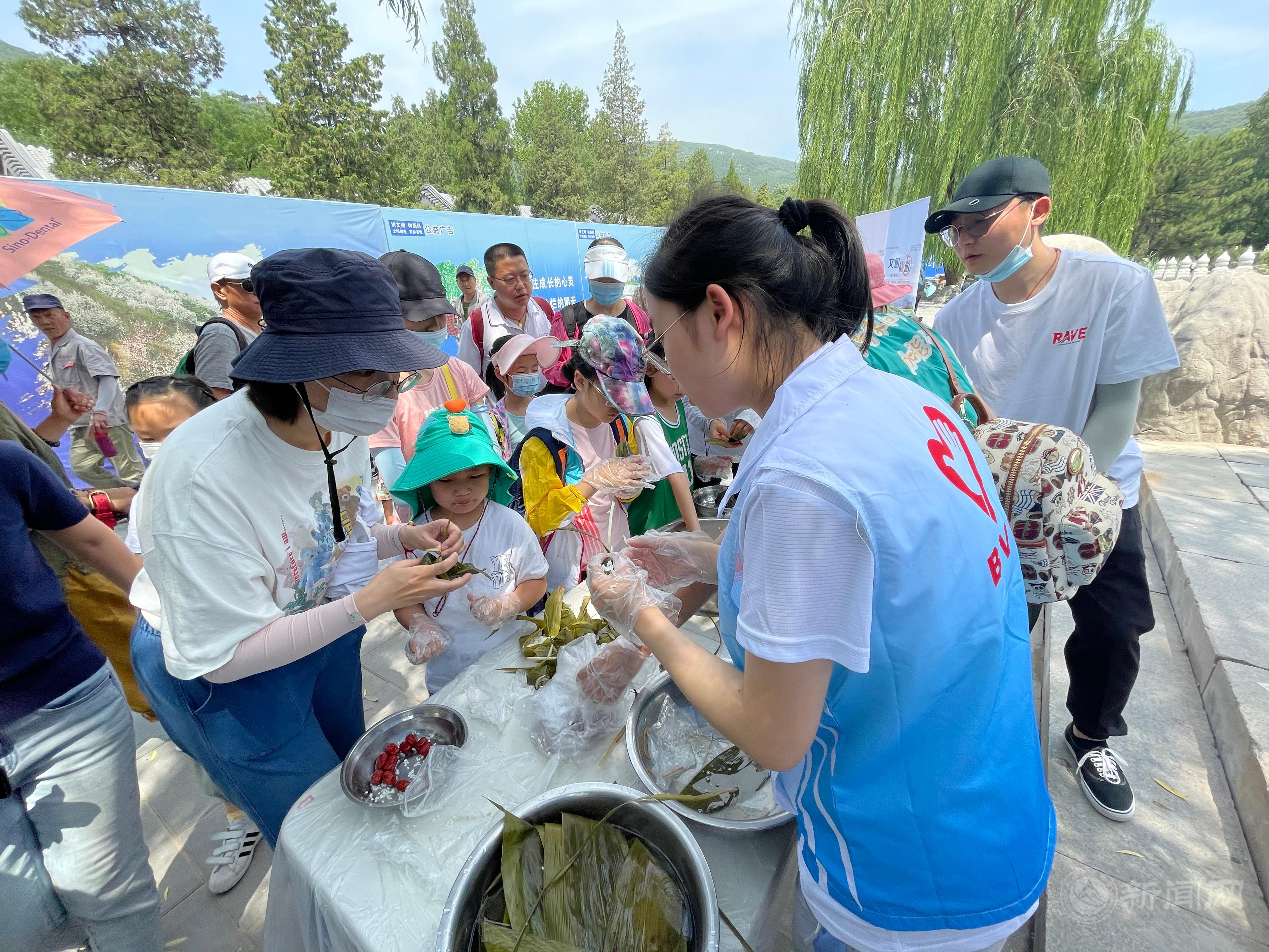 在八大处城市志愿者服务站,学生志愿者们通过开展红色故事宣讲的形式,向市民群众讲述党史故事《八大处的红色电波》,赓续红色基因、传承红色血脉。正值端午节假期,志愿者们还与游客一起包粽子、话民俗,弘扬中华优秀传统文化,营造浓厚的节日氛围。