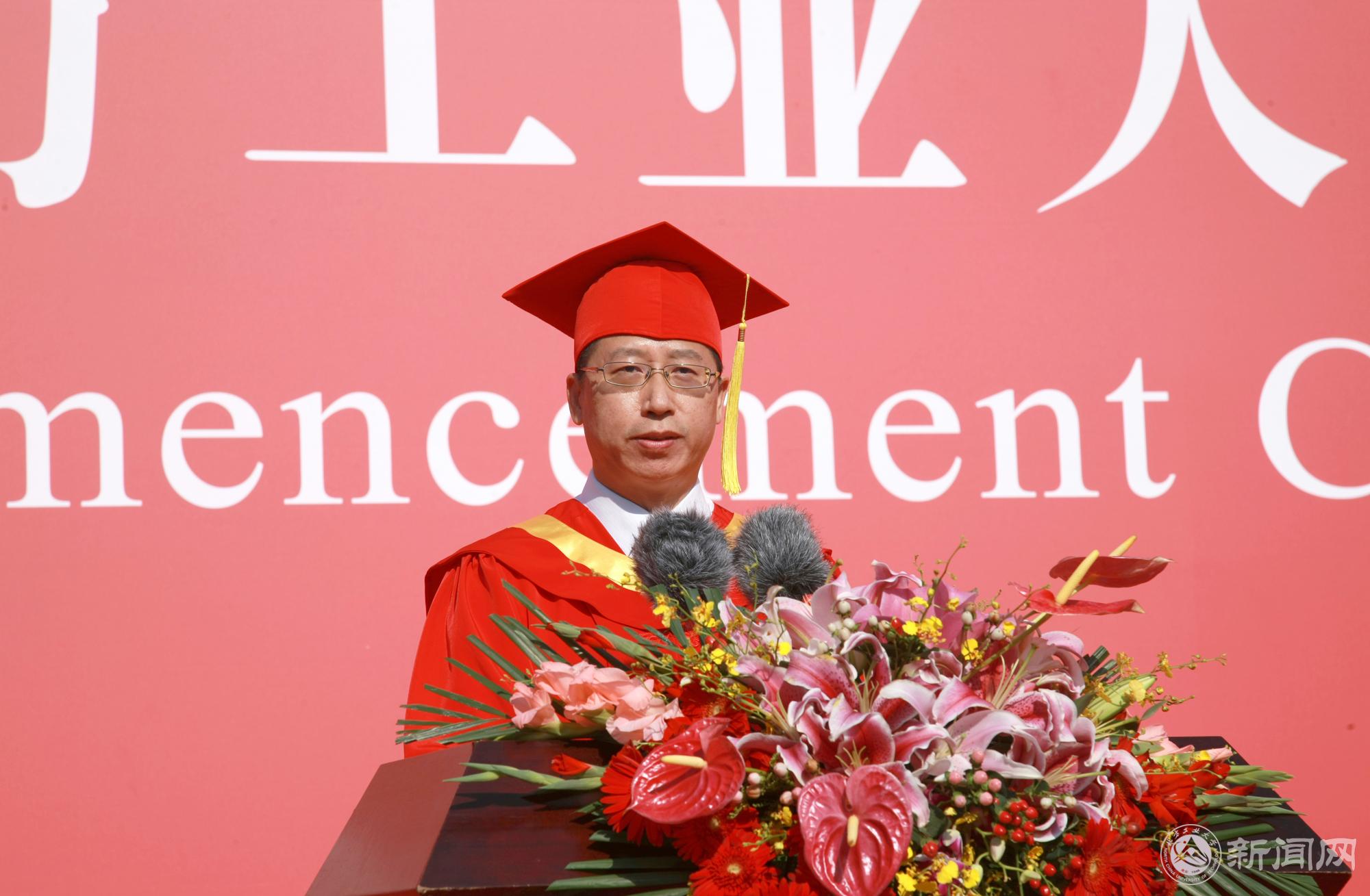 校党委书记缪劲翔致辞。他祝贺同学们顺利完成学业,开启人生新的征程。他希望同学们爱国爱民,做红色基因的传承者,牢记沈兼士、陈光熙等学校老一辈创建者开山启林的丰功伟绩和爱党爱国的深厚情怀,把个人理想追求融入现代化国家建设新征程,与祖国同行、与时代共进;希望同学们锤炼品德,做人品才学的修炼者,要以学校众多优秀毕业生为榜样,不断超越自己,不断取得新的进步;希望同学们勇于创新,做不负时代的开拓者,以优秀校友为榜样,以聪明才智贡献国家,以开拓进取服务社会;希望同学们实干实学,做幸福生活的创造者,发扬同学们在“服务保障国庆志愿服务”“疫情防控阻击战”“首都百万师生网络歌咏比赛”中展现出来的拼搏精神、专业态度、团结力量,以奋斗姿态成就非凡事业。最后,他祝全体毕业生前程似锦,毕业快乐。